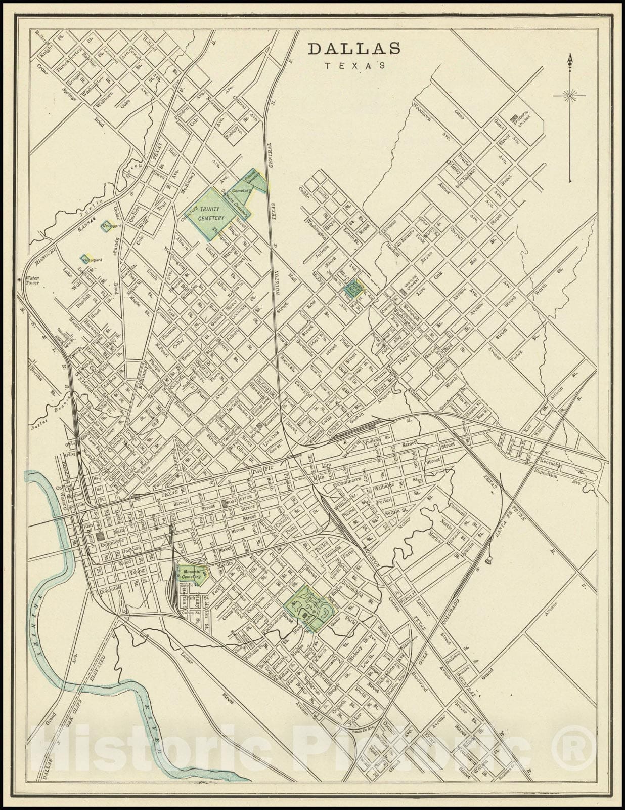 Historic Map : Dallas, Texas, 1893 v1, Vintage Wall Art