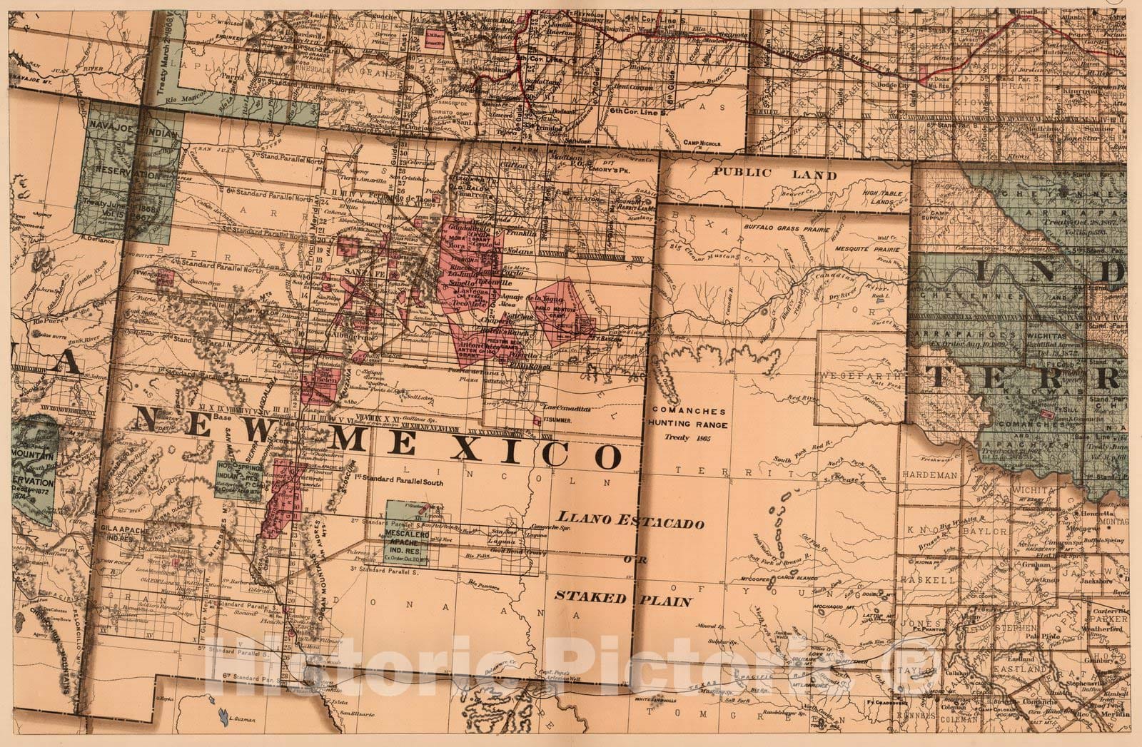 Historic Map : (Map 10 - Texas, New Mexico, Indian Territories, Utah), 1878 - Vintage Wall Art