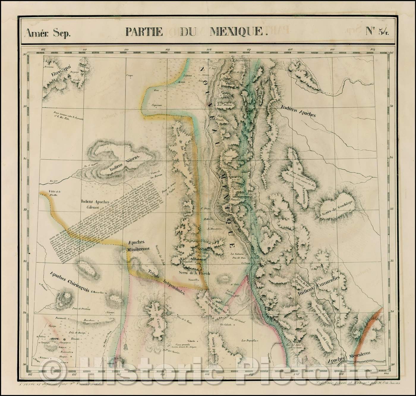 • .Historic Map - Amer. Sep. No. 54 Partie Du Mexique Texas, New Mexico, 1825, Philippe Marie Vandermaelen v1