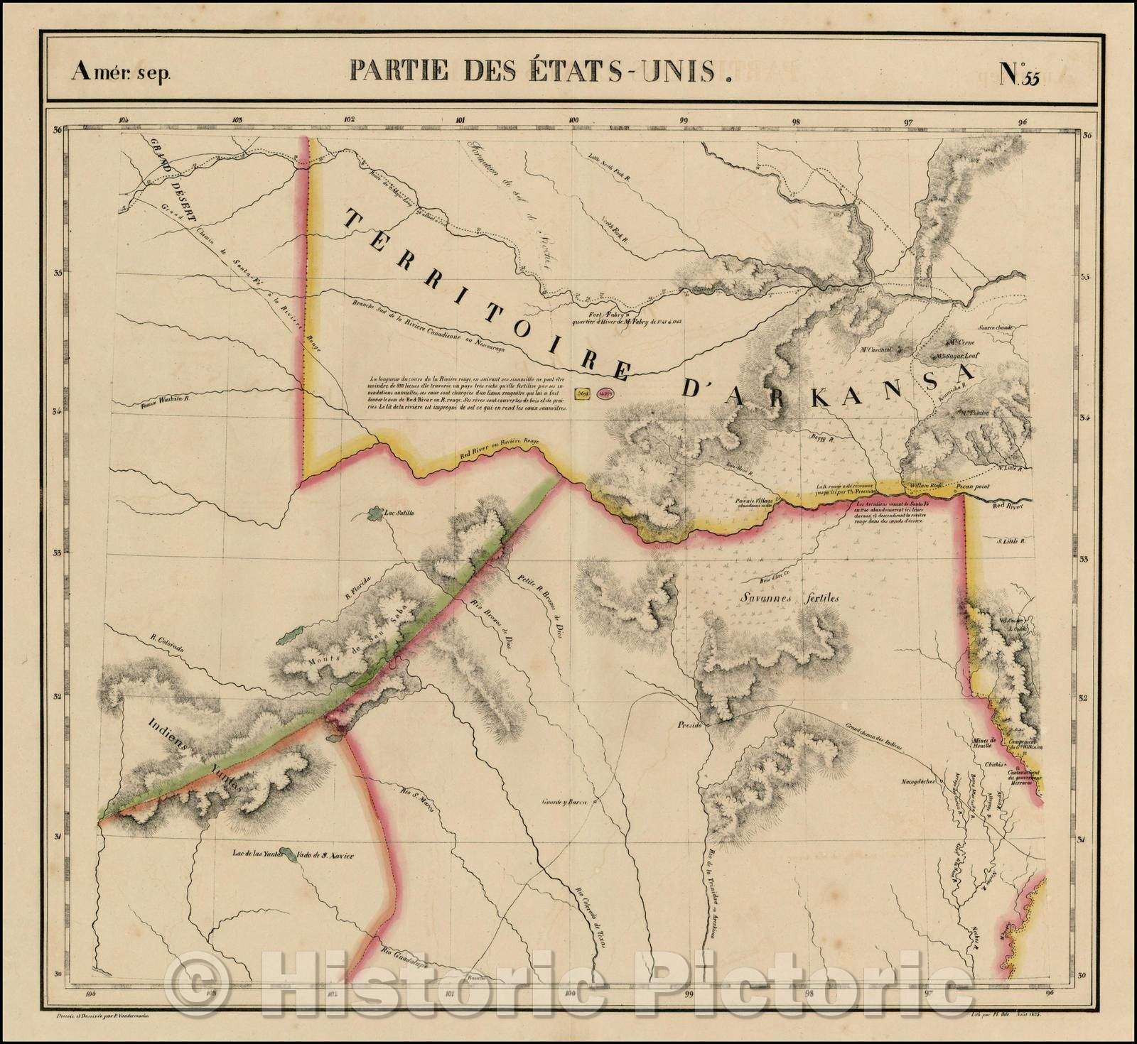 Historic Map - Amer. Sep. No. 55. Partie Des Etats-Unis [Parts of Texas & Oklahoma] :: Texas & Oklahoma, 1825 - Vintage Wall Art