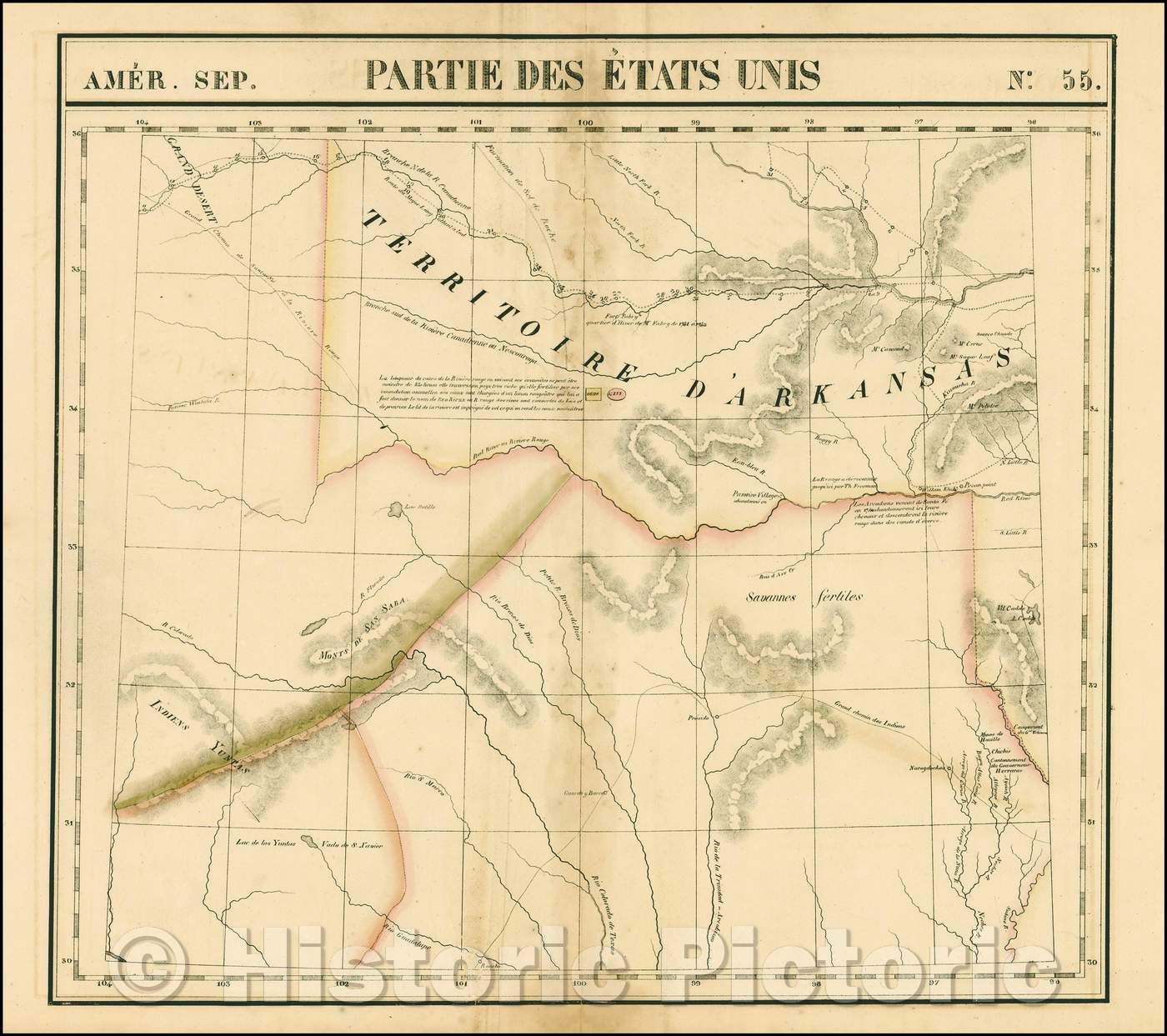 Historic Map - Amer. Sep. No. 55. Partie Des Etats-Unis [Texas & Oklahoma] / Second edition of Vandermaelen's Map of Eastern Texas and Oklahoma, 1825 - Vintage Wall Art