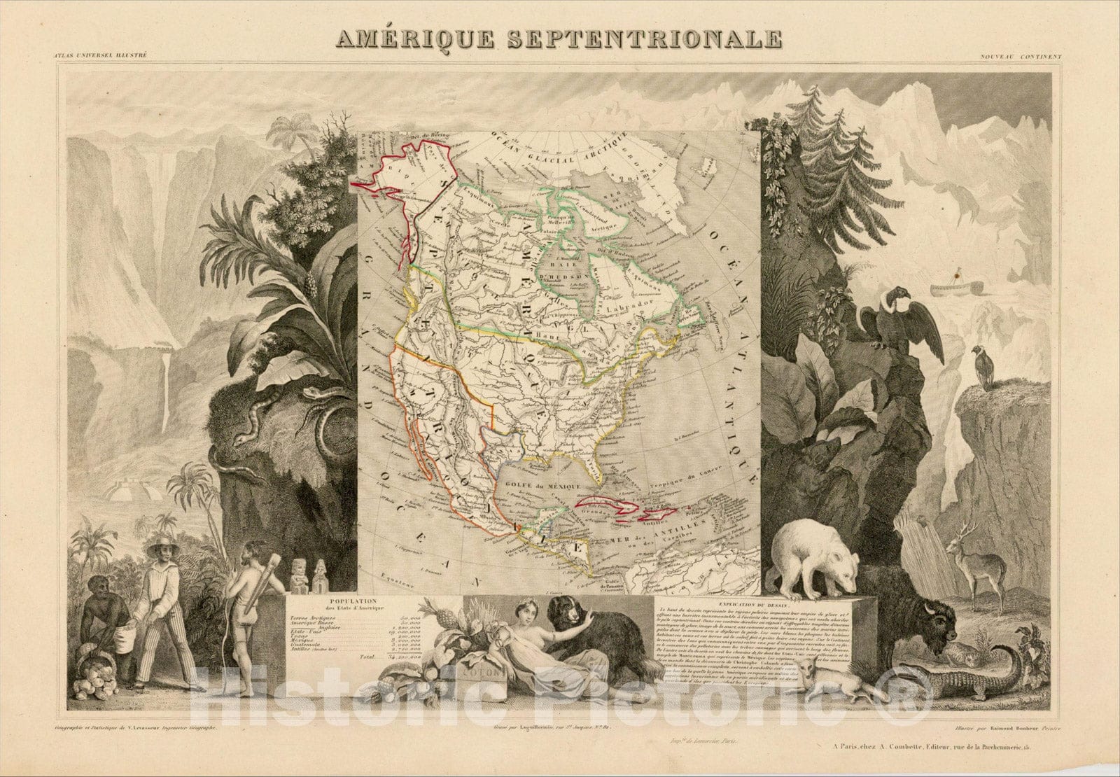 Historic Map : Amerique Septentrionale (Republic of Texas), c1845, , Vintage Wall Art