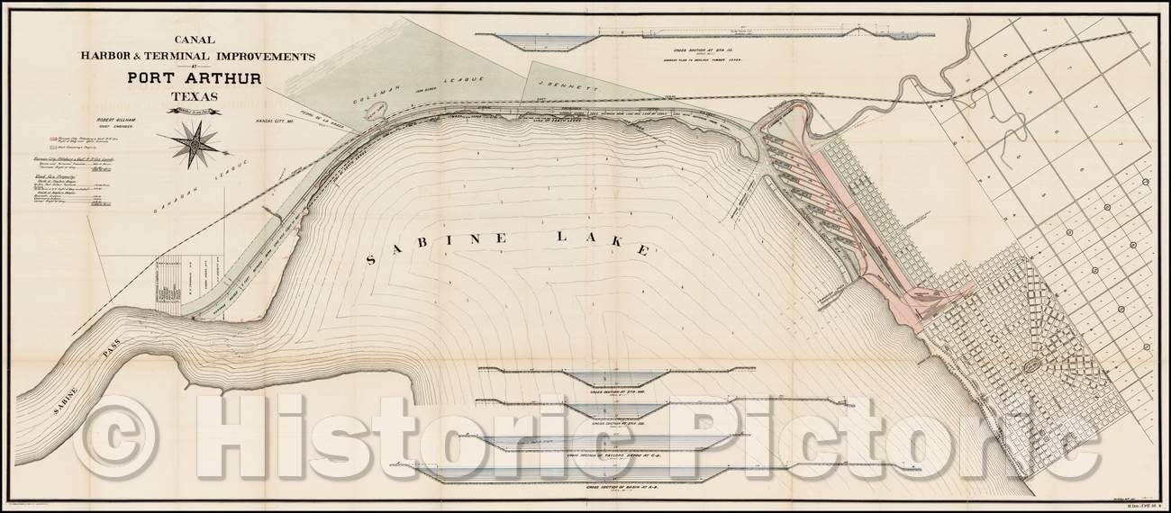 Historic Map - Canal Harbor & Terminal Improvements at Port Arthur Texas, 1897, Robert Gilham - Vintage Wall Art