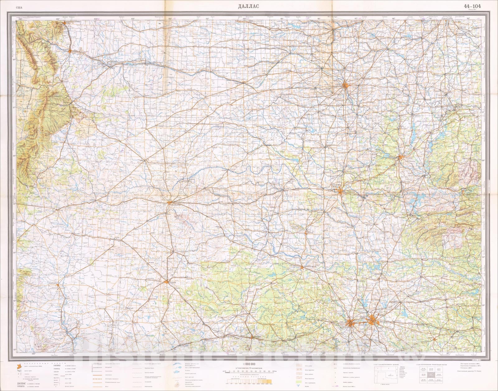 Historic Map : [Dallas, Texas] ??????, 1967, Soviet Geographic and Cartographic Ministry, Vintage Wall Art