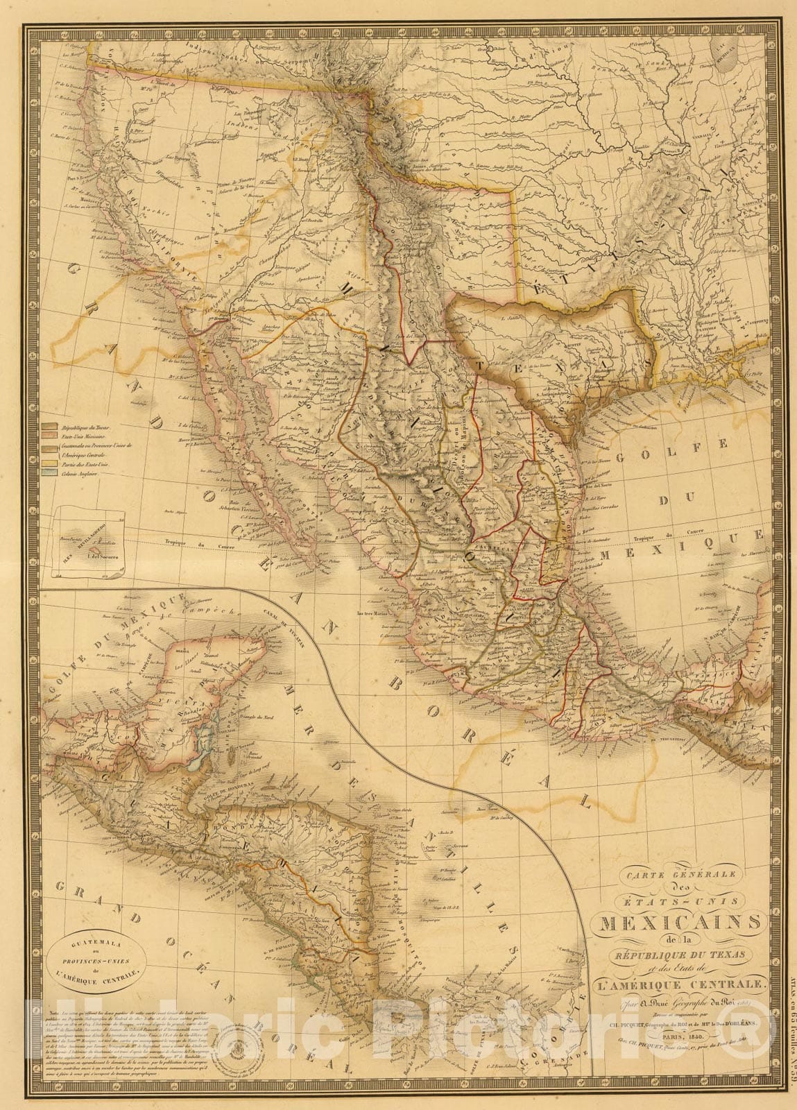 Historic Map : Etats-Unis Mexicains, Texas, Amerique Centrale., 1840, Vintage Wall Art