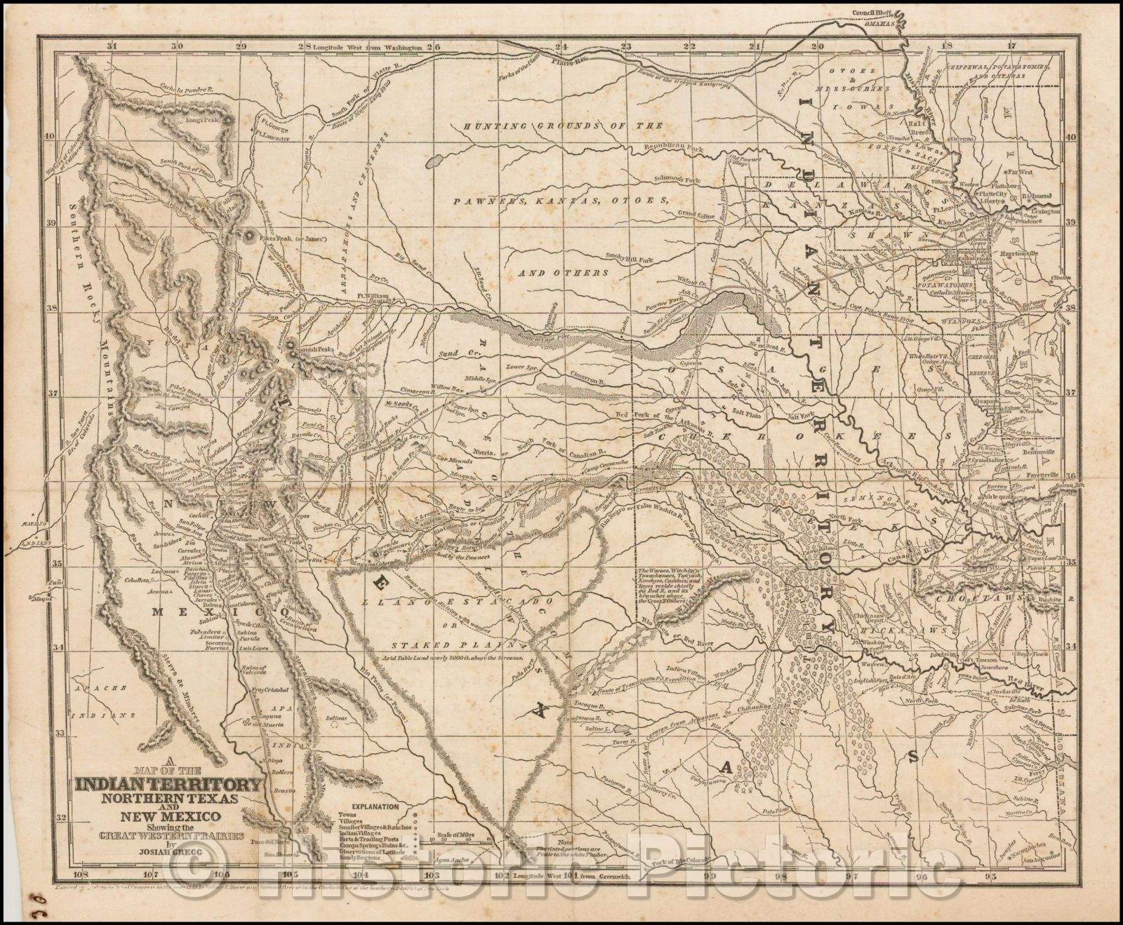 • .Historic Map - Indian Territory, Northern Texas And New Mexico Showing the Great Western Prairies, 1844, Josiah Gregg v2