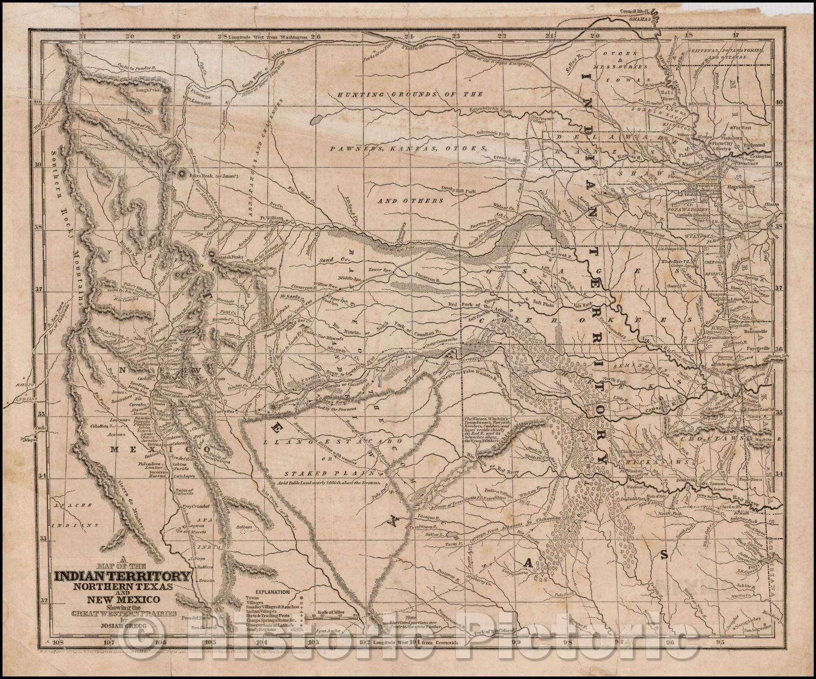 Historic Map - Indian Territory, Northern Texas And New Mexico Showing the Great Western Prairies, 1844, Josiah Gregg v1