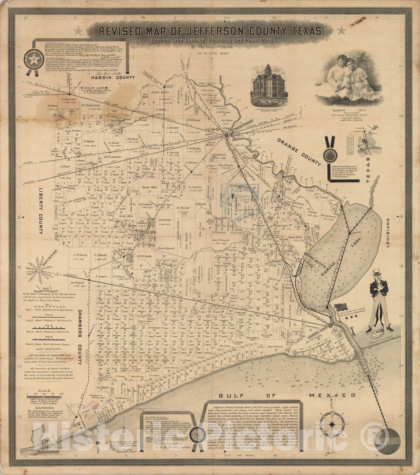 Historic Map : Jefferson County, Texas, 1898, Pattillo Higgins, Vintage Wall Art
