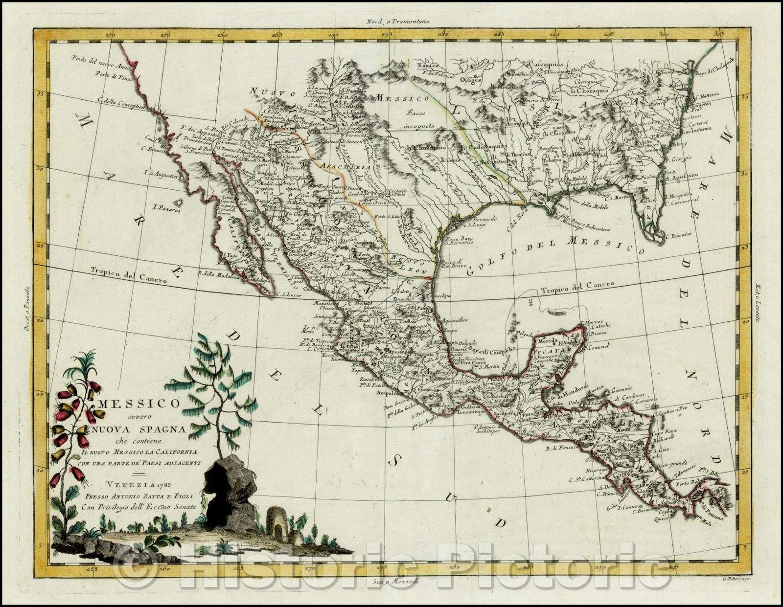 Historic Map - Messico ouvero Nuova Spagna che contiene Il Nuovo Messico La California Con Parte De'Paesi/Map of Mexico, Texas & Upper California, 1785 - Vintage Wall Art