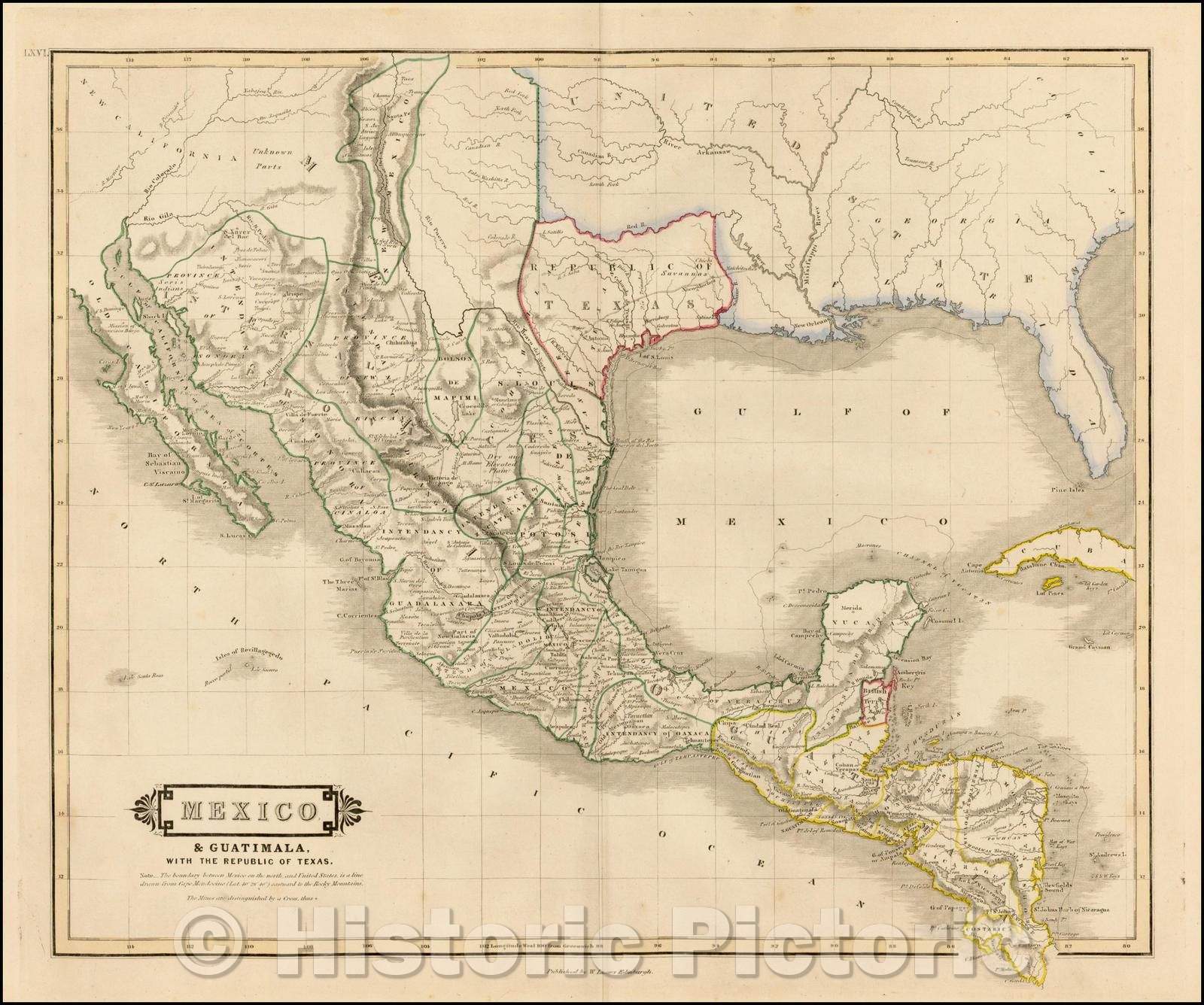 • .Historic Map - Mexico & Guatimala, with the Republic of Texas, 1838, William Home Lizars v2