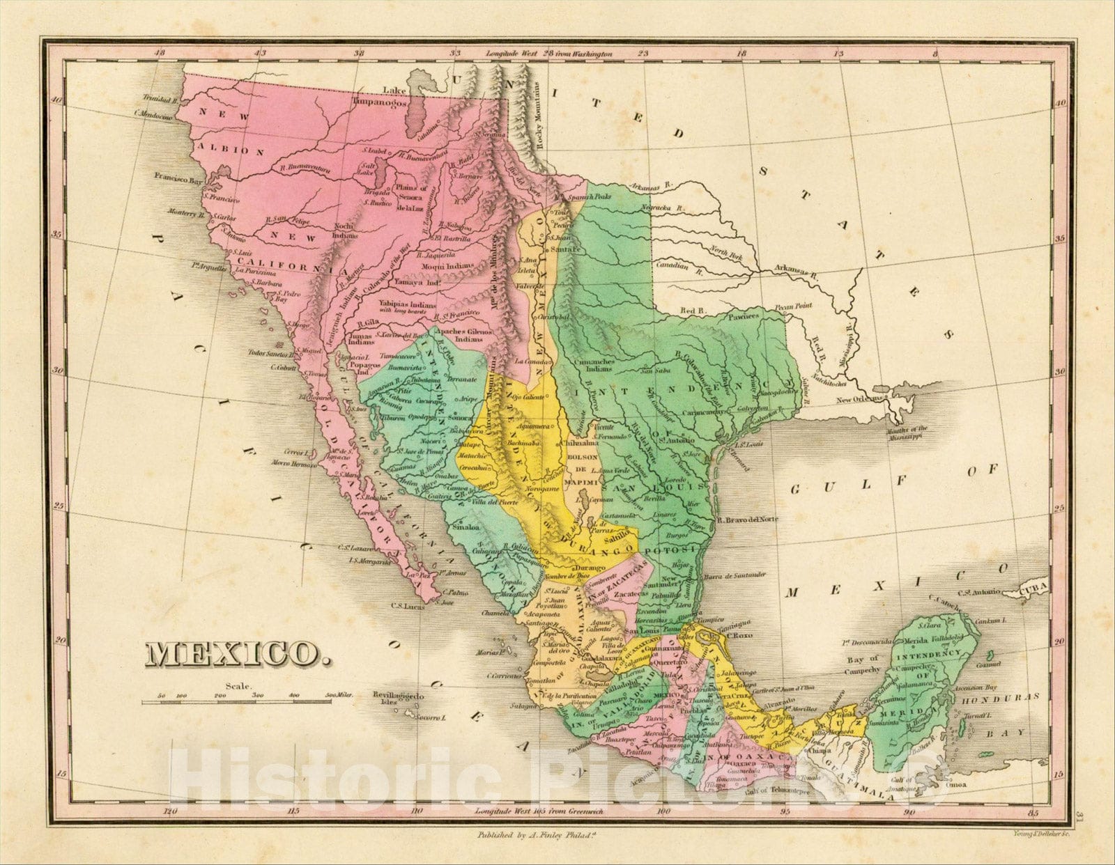 Historic Map : Mexico [including Texas & Upper California], 1826, Anthony Finley, Vintage Wall Art