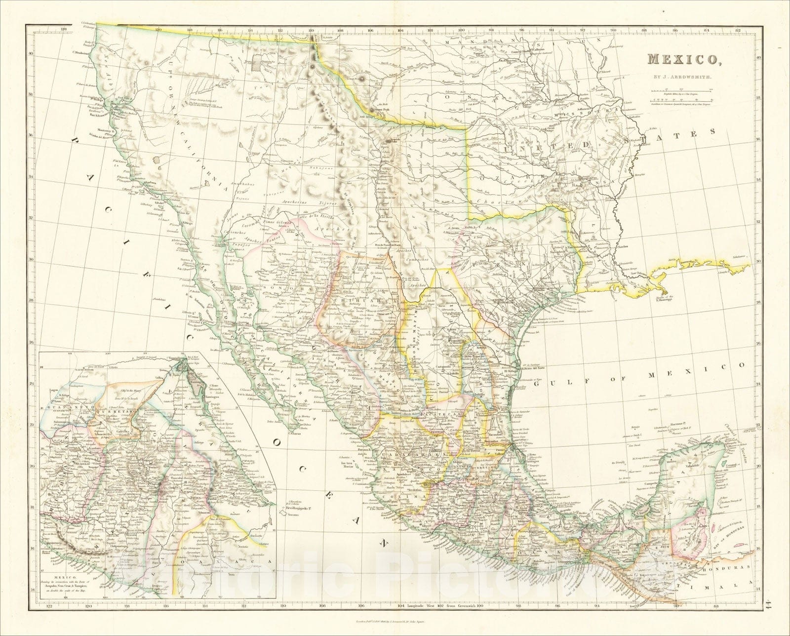 Historic Map : Mexico & Republic of Texas, 1840, John Arrowsmith, Vintage Wall Art