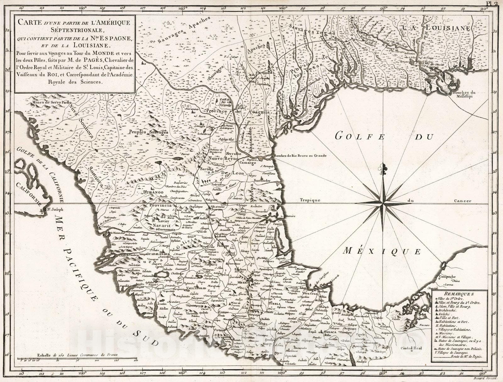 Historic Map : Mexico, Texas, Gulf of North America 1782 Carte d'une partie de l'Amerique Septentrionale , Vintage Wall Art