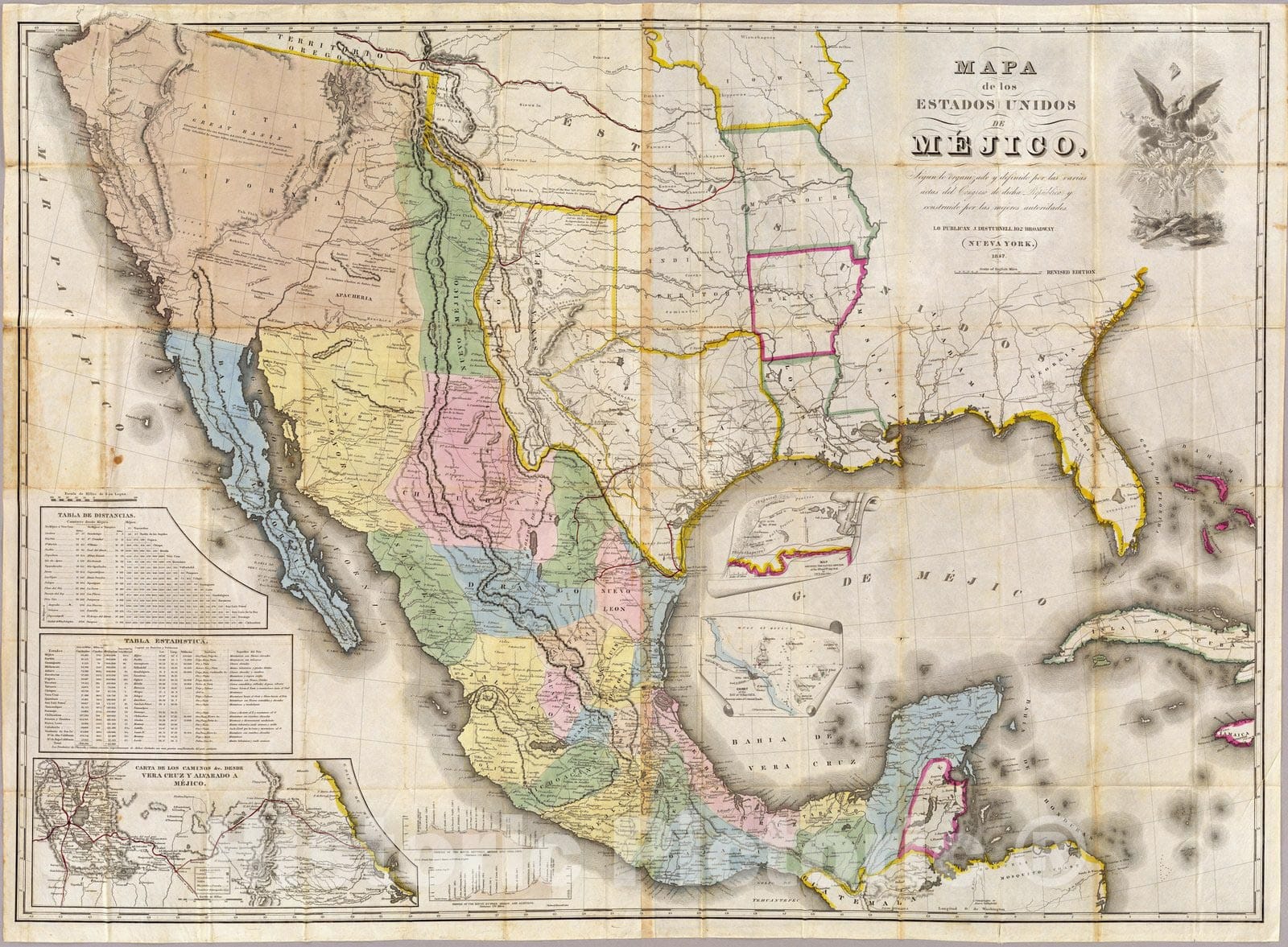 Historic Map : Mexico, Texas, Mapa de los Estados Unidos De Mejico, 1847 , Vintage Wall Art