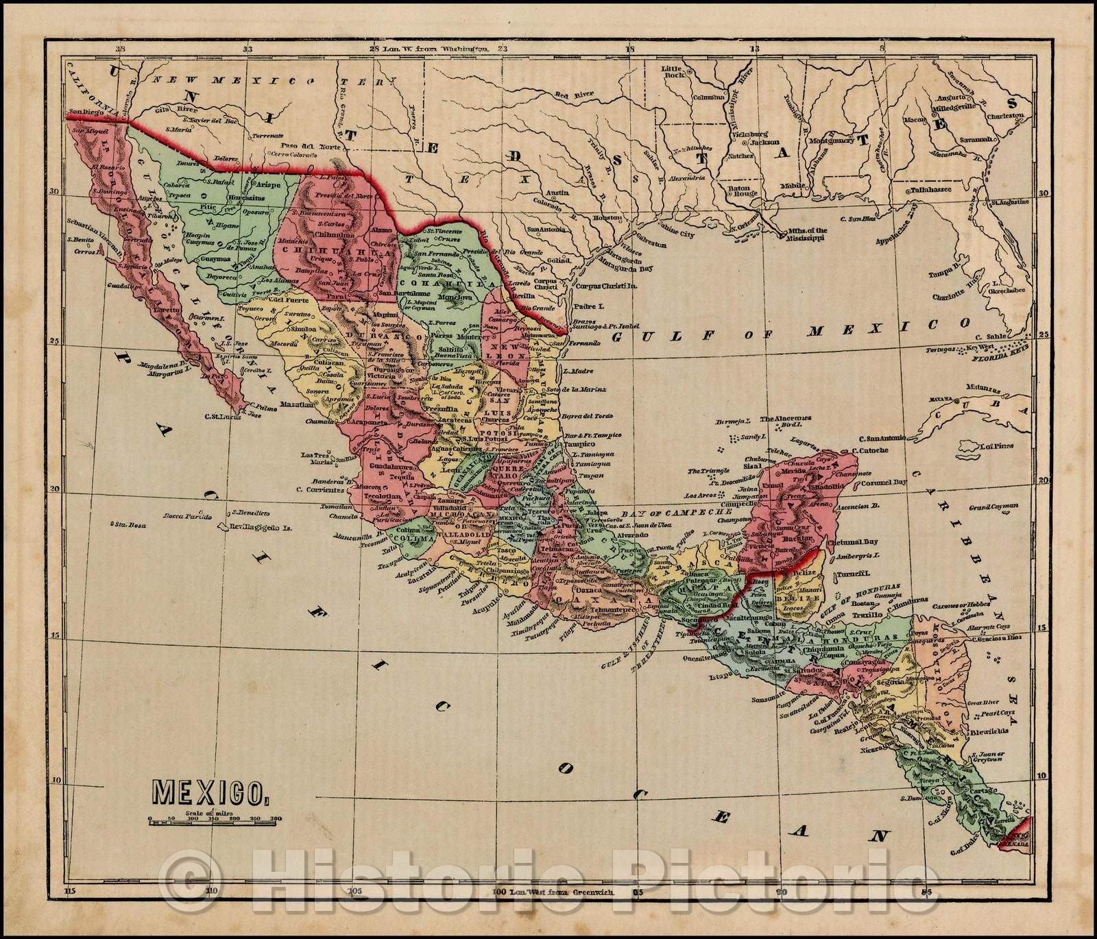 Historic Map - Mexico (with Southestern US, Texas, etc.), 1856, Charles Morse - Vintage Wall Art