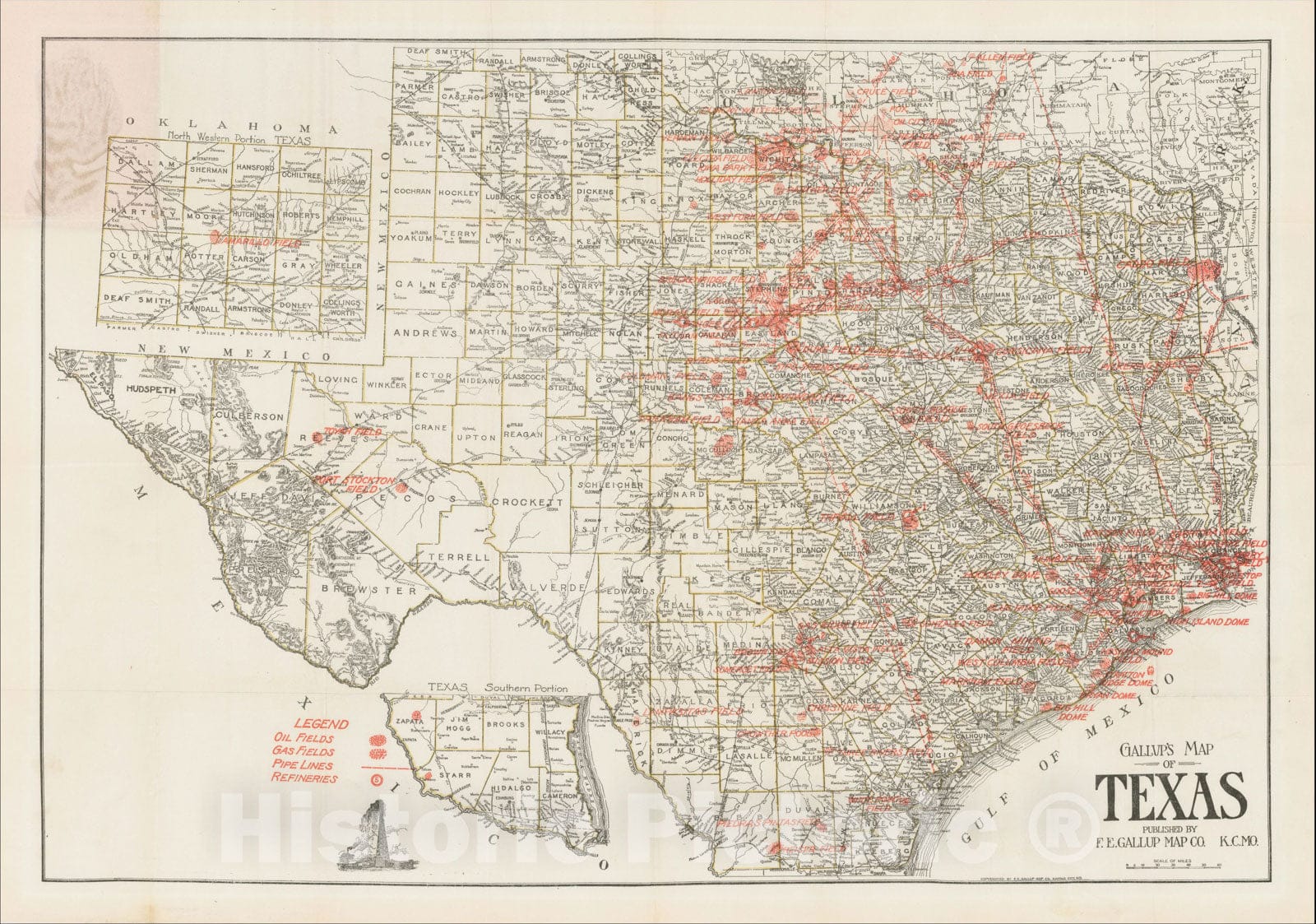 • .Historic Map : New Map of Texas Showing Oil and Gas Fields Pipe Lines and Refineries, , M. H. West, Vintage Wall Art