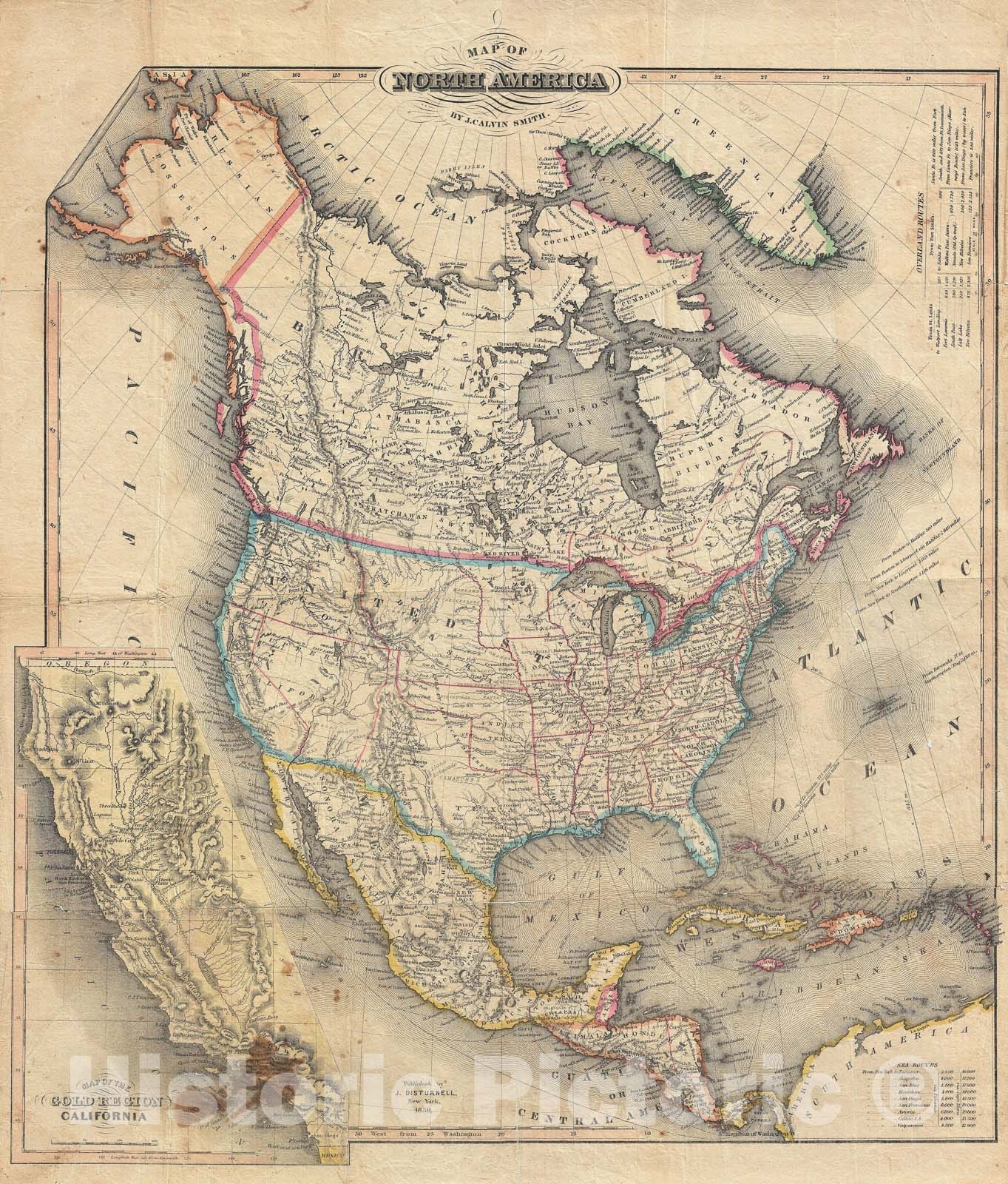 Historic Map : North America w/ California Gold Region and Texas, Smith, 1850, Vintage Wall Art