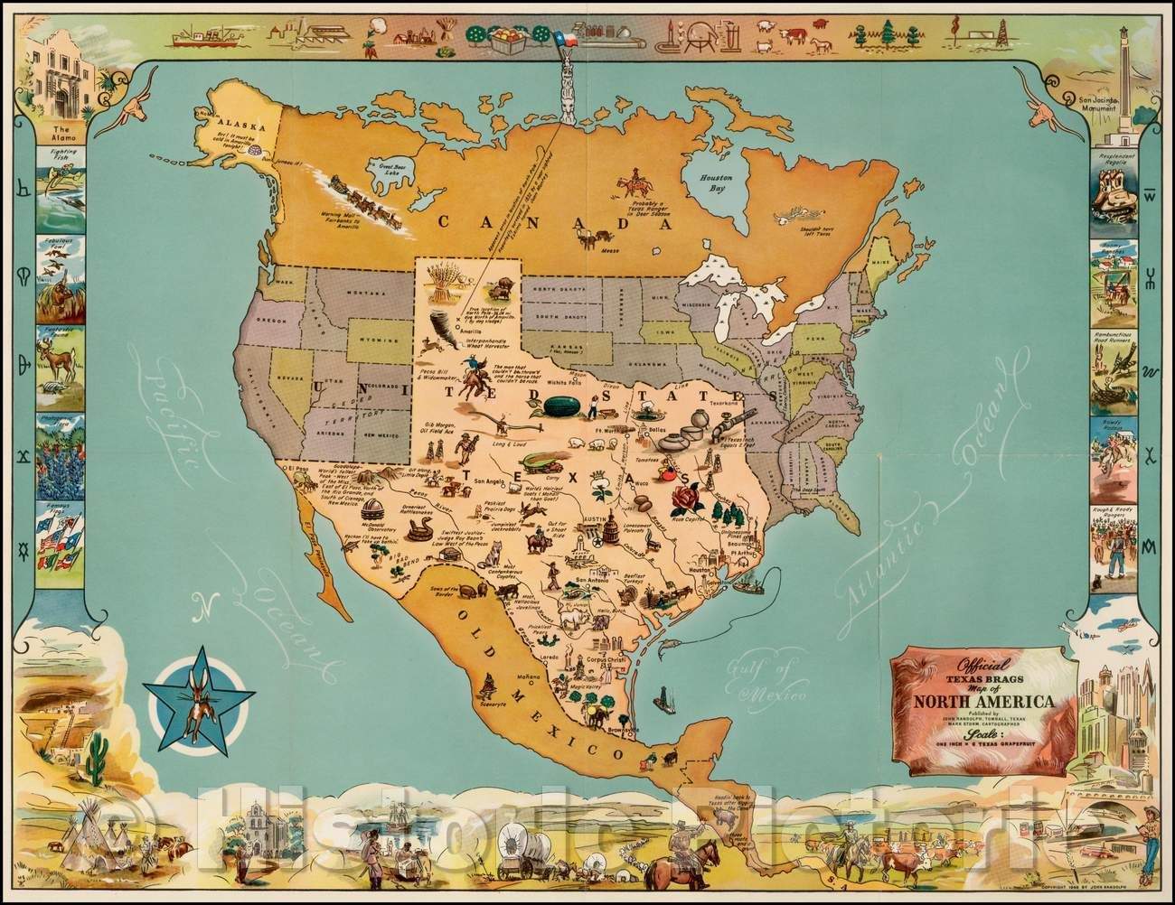 Historic Map - Official Texas Brags Map of North America, 1948, Mark Storm v4