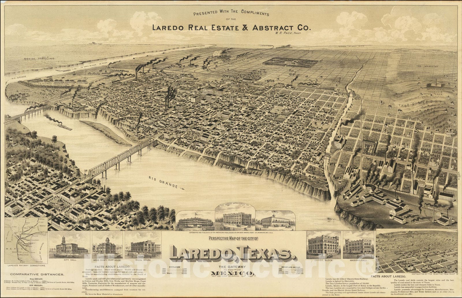 Perspective Map of the City of Laredo, Texas. The Gateway to and from Mexico., c1890, American Publishing Co.