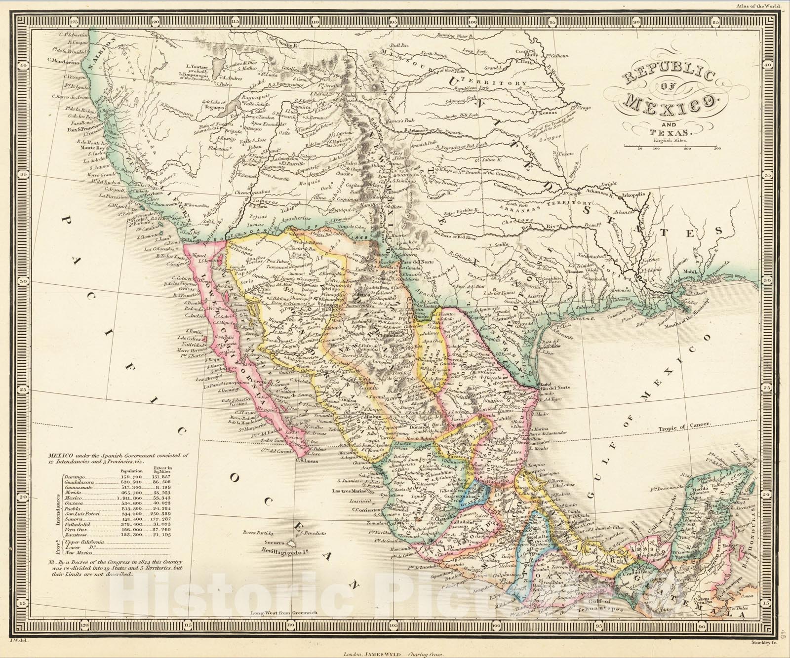 Historic Map : Republic of Texas and Mexico, 1836, James Wyld, v1, Vintage Wall Art