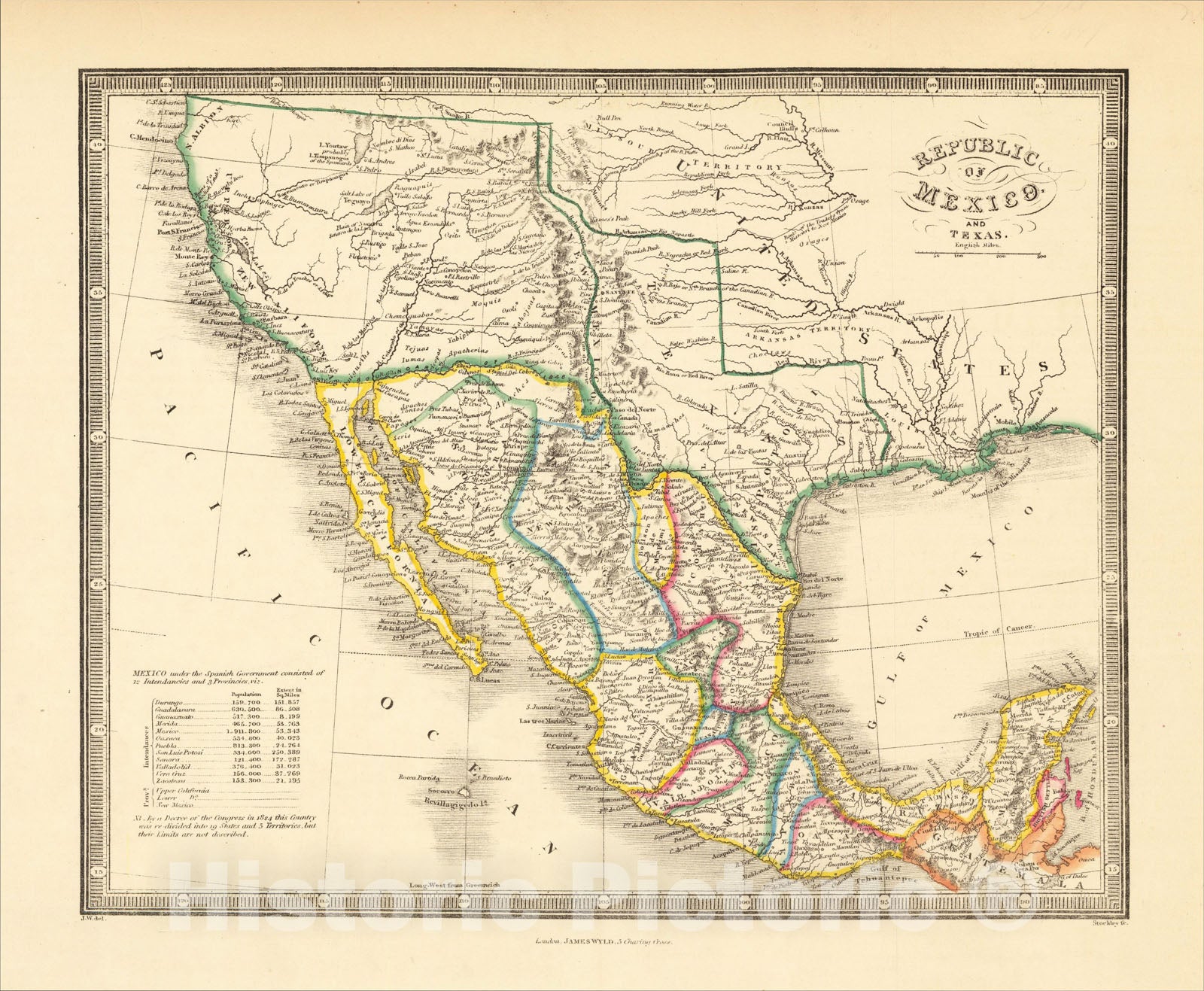 Historic Map : Republic of Texas and Mexico, 1836, James Wyld, v2, Vintage Wall Art