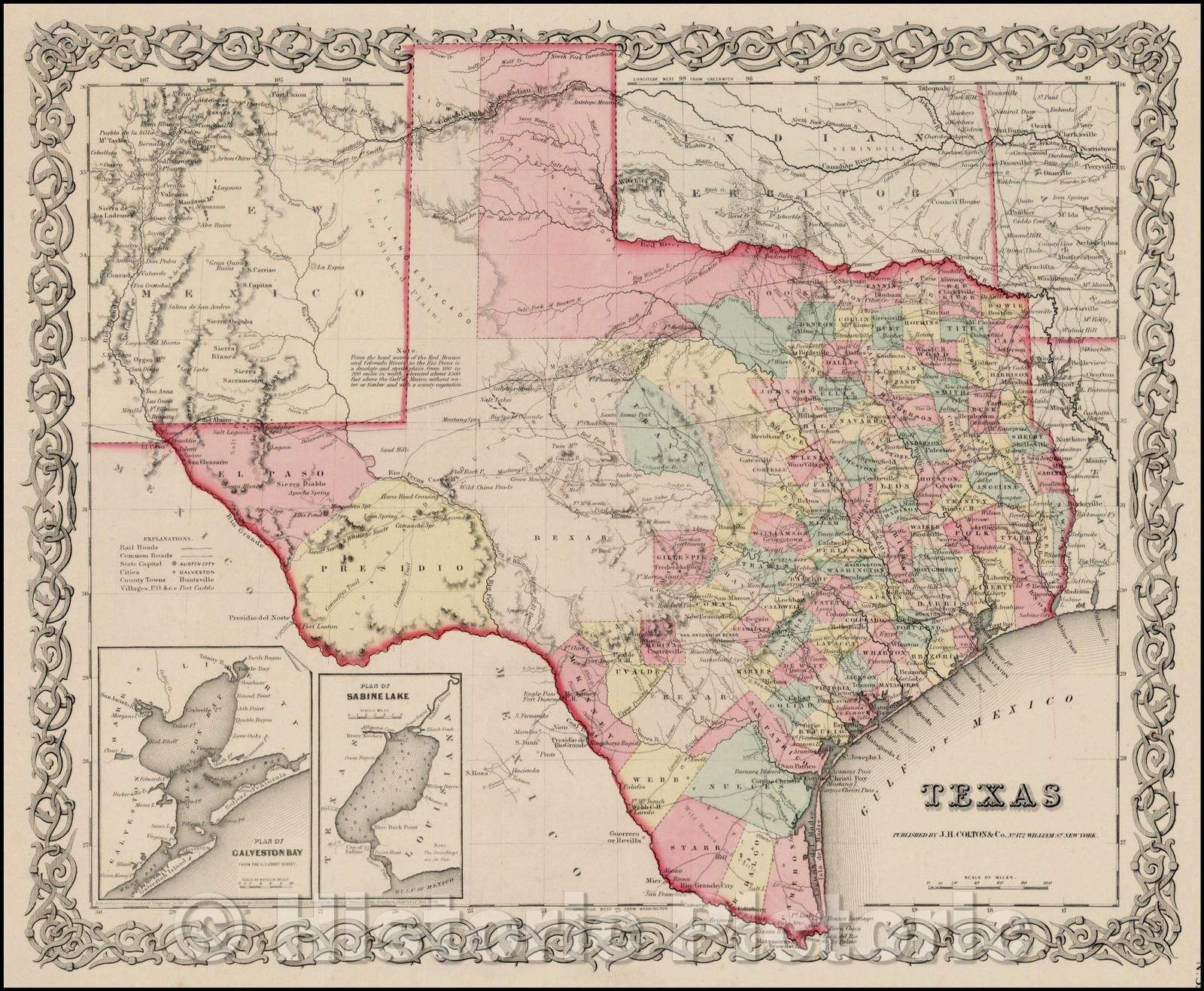 Historic Map - Texas, 1855, Joseph Hutchins Colton v1