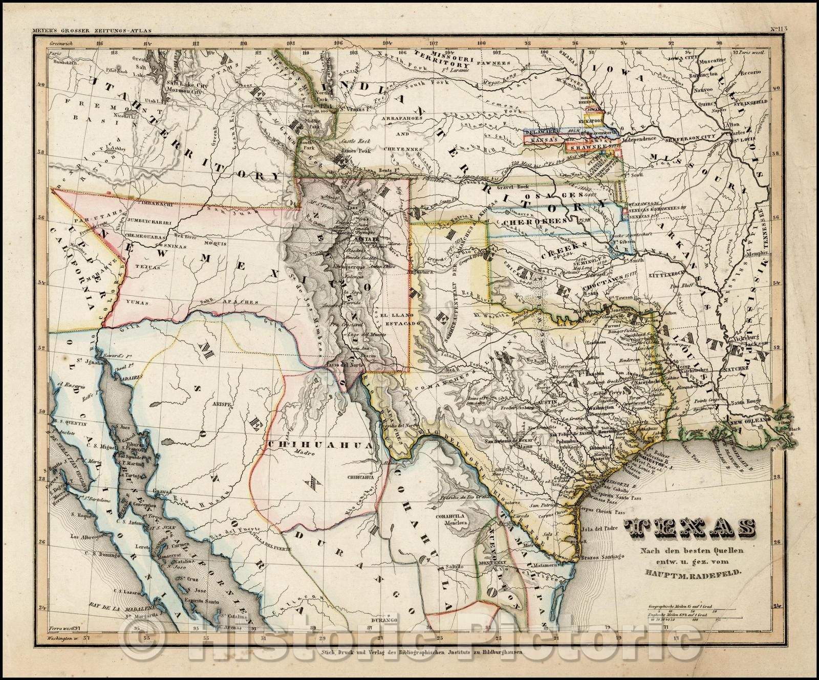 Historic Map - Texas Nach den besten Quellen entw. U. Gez. Vom Hauptm. Radefeld. / Map of the Republic of Texas at the start of the Mexican War, 1850 - Vintage Wall Art