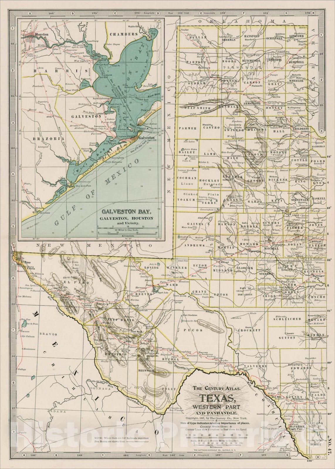 Historic Map : Texas, Western Part, 1897, The Century Company, v2, Vintage Wall Art