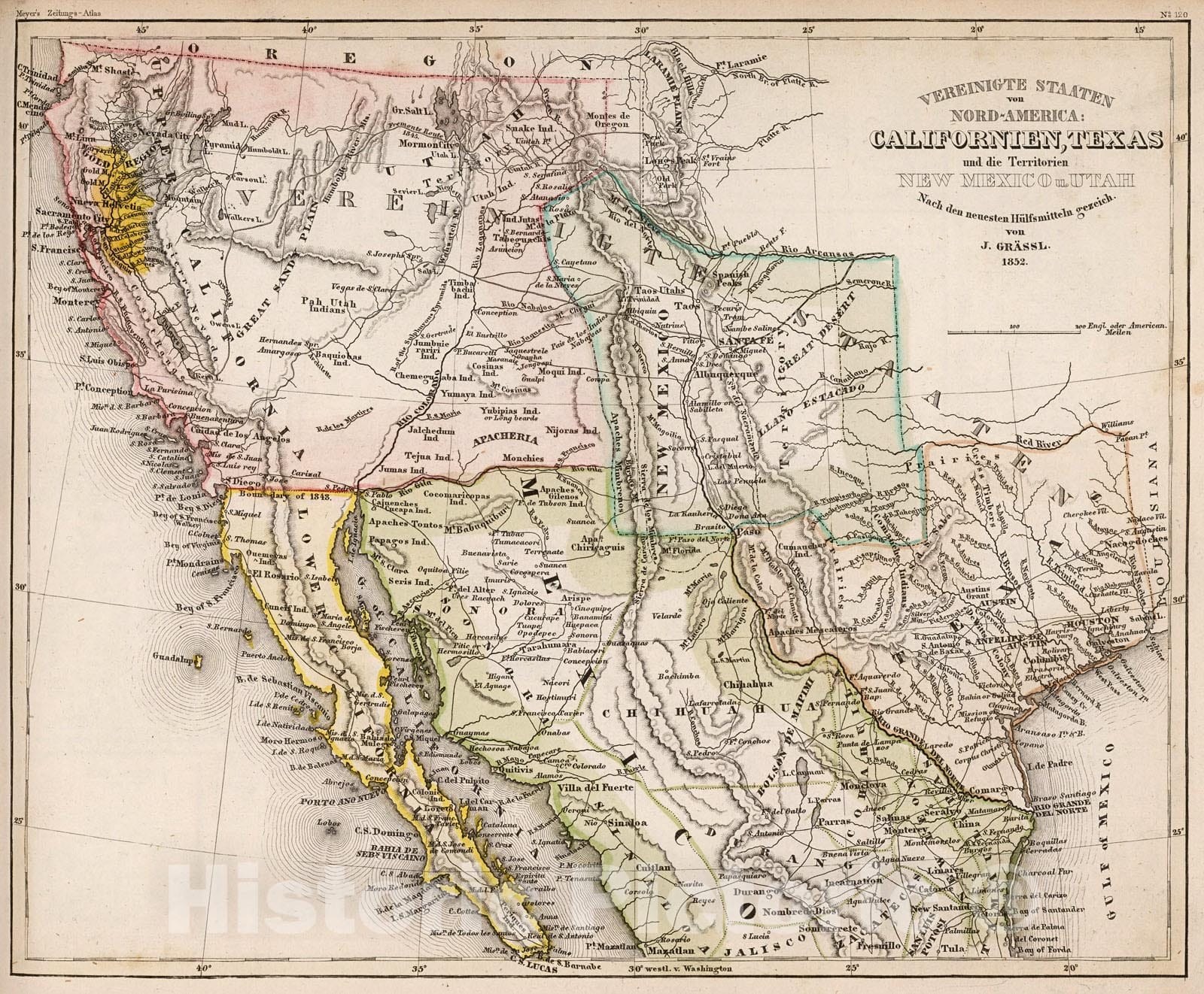 Vereinigte Staaten von Nord-America: Californien, Texas und die Territorien New Mexico u. Utah, 1852, 1852, Joseph Meyer