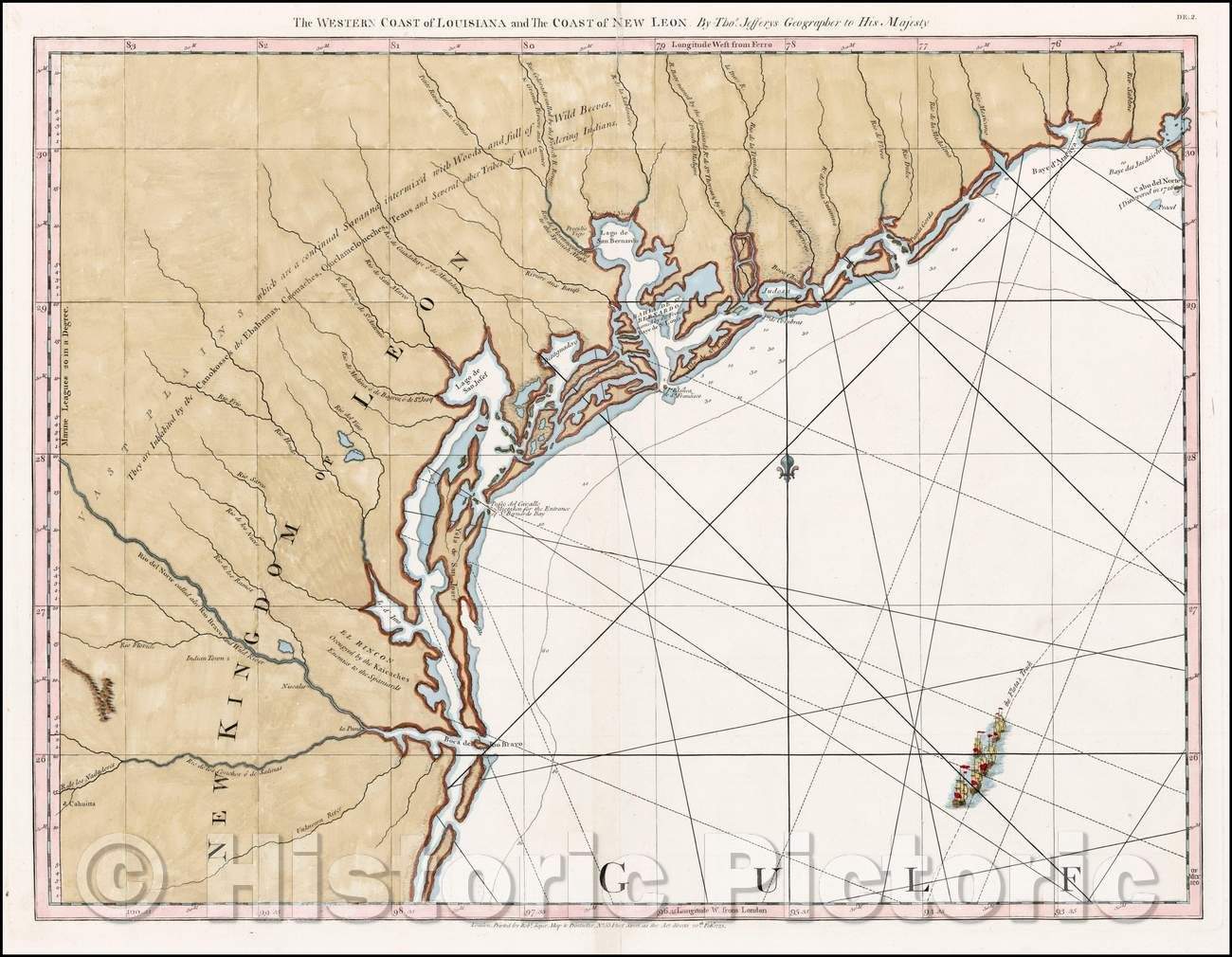 The Western Coast of Louisiana and The Coast of New Leon. (first modern map of the Texas Coast), 1775, Thomas Jefferys