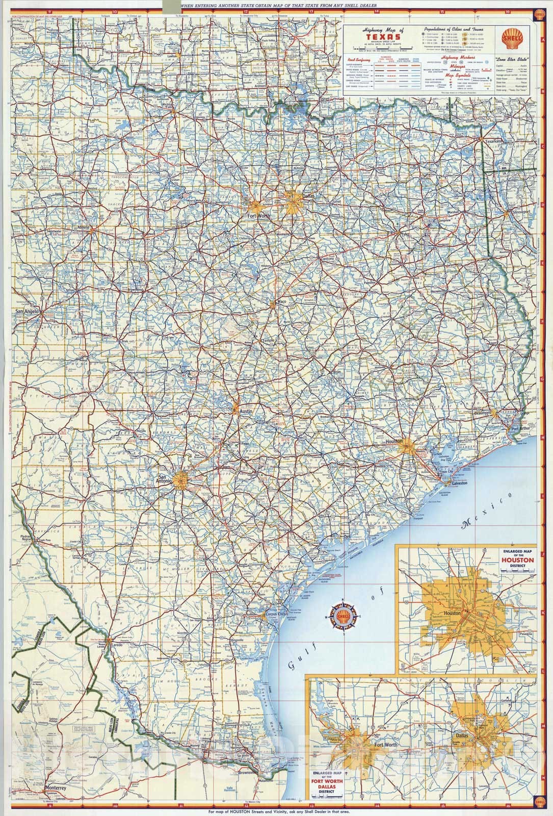 Historic Wall Map : National Atlas - 1956 Shell Highway Map of Texas (eastern portion). - Vintage Wall Art