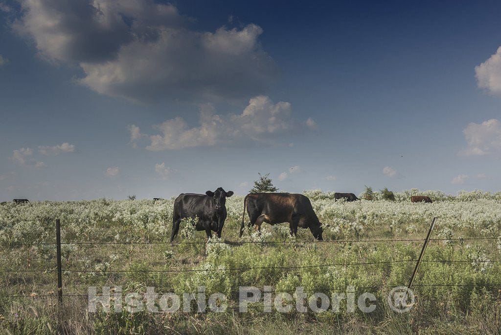 Hunt County, TX Photo - Cows in a Field of Wildflowers in Rural Hunt County Near Greenville, Texas
