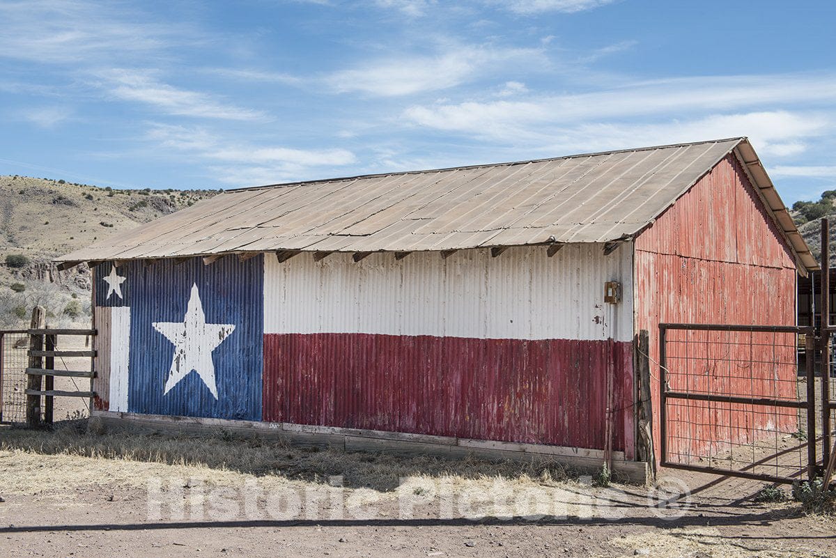 Jeff Davis County, TX Photo - Metal side of a barn, decorated with a painting of the Flag of Texas-