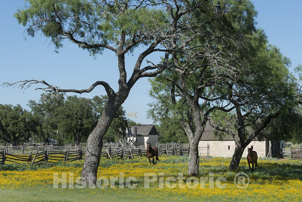 • Johnson City, TX Photo - Horses gallop toward the camera in a wildflower-rich National Park Service meadow in Johnson City, Texas