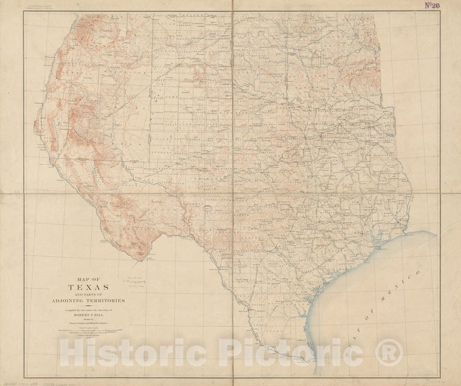 • Historical Map, 1900 Map of Texas and Parts of adjoining Territories, Vintage Wall Art