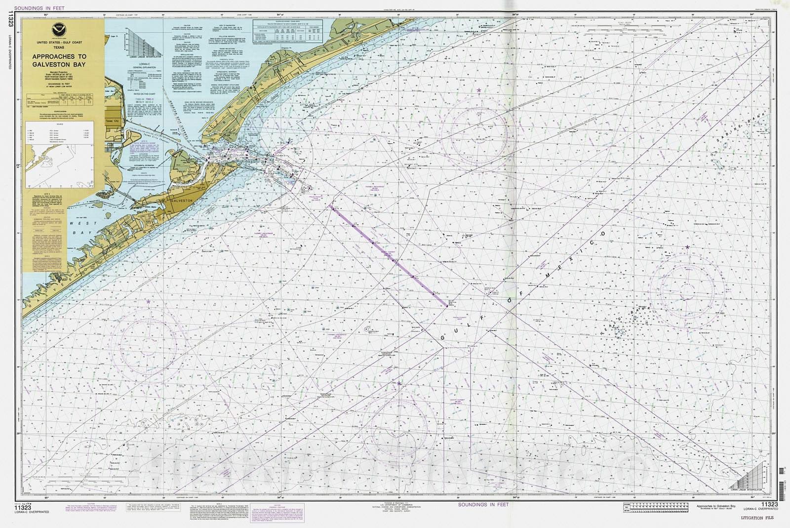 • .Historic Nautical Map - Approaches To Galveston Bay, 1994 NOAA Chart - Texas (TX) - Vintage Wall Art