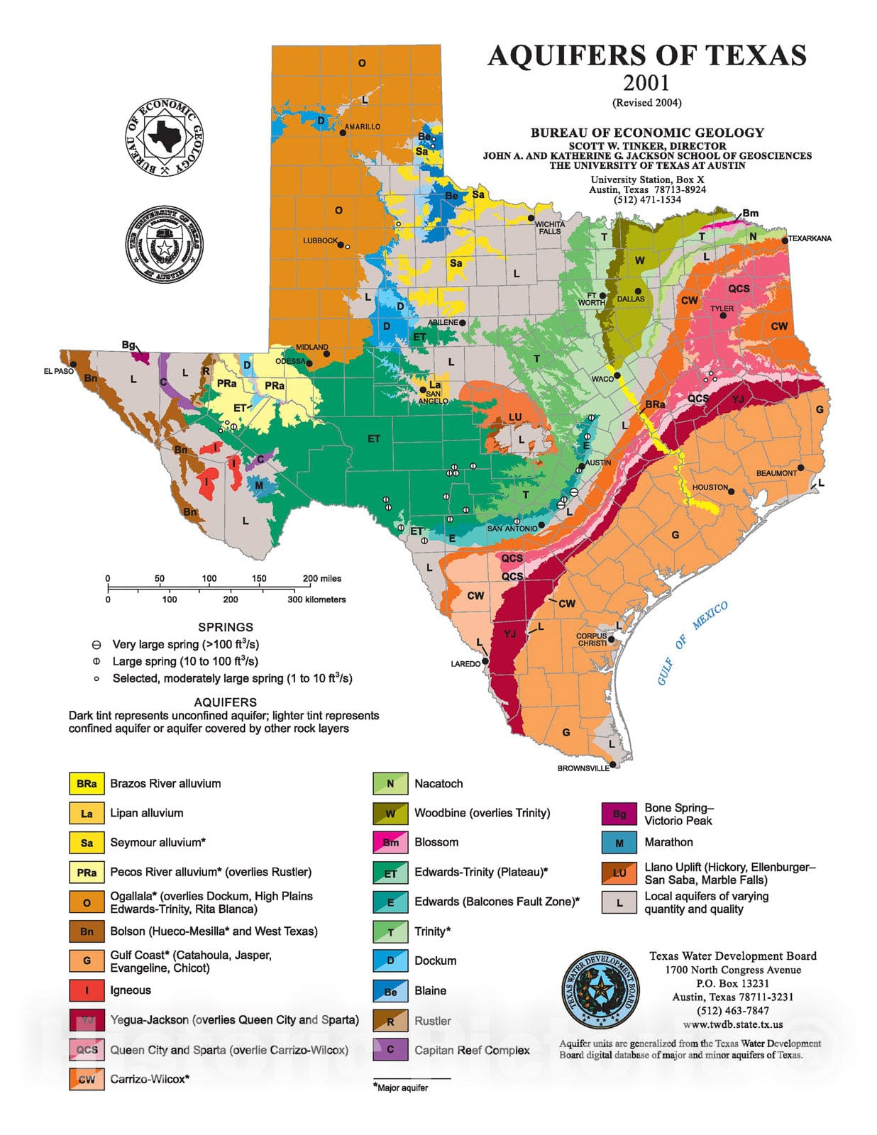• Map : Aquifers of Texas, 2001 Cartography Wall Art :