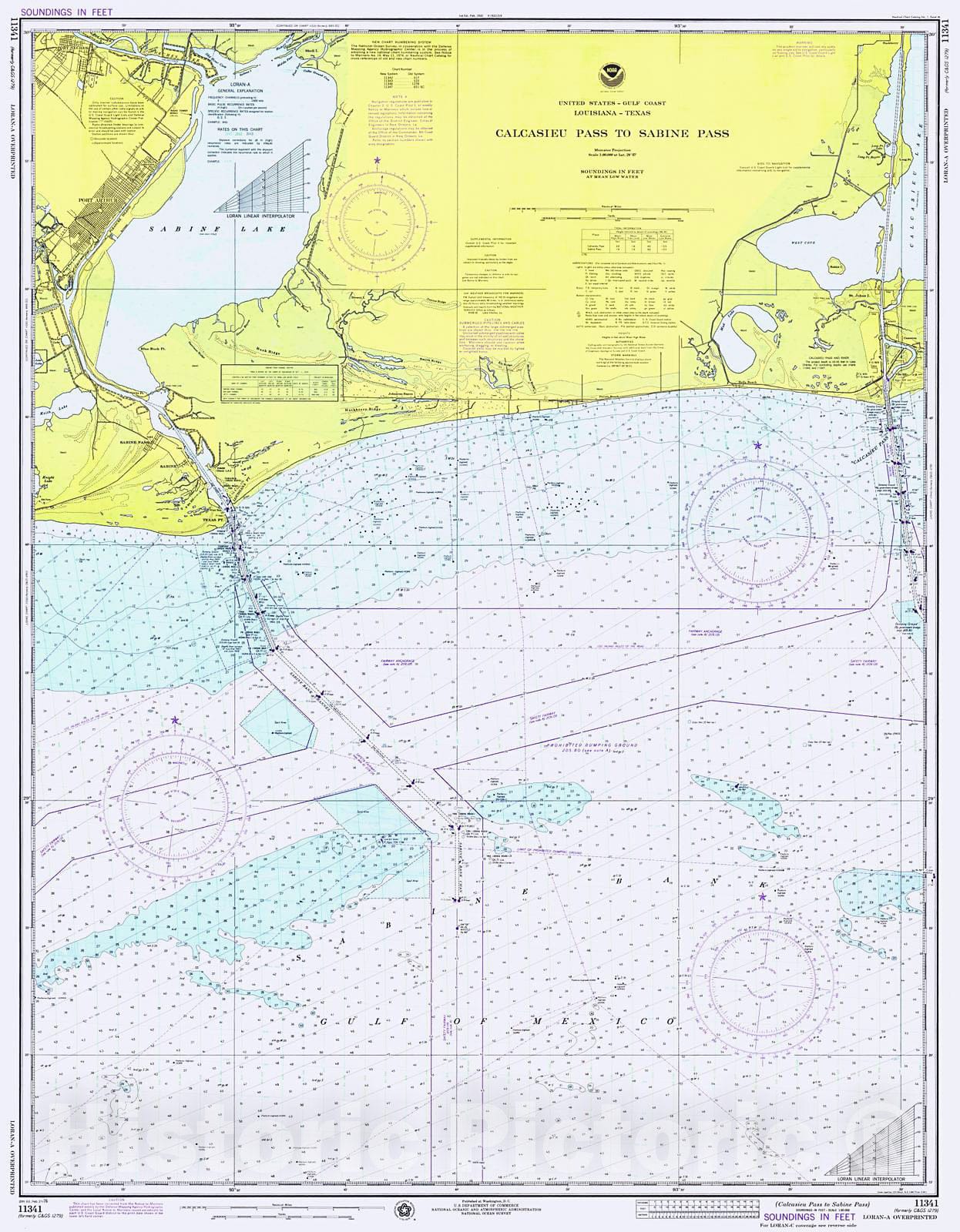 Historic Nautical Map - Calcasieu Pass To Sabine Pass, 1976 NOAA Chart - Texas, Louisiana (TX, LA) - Vintage Wall Art