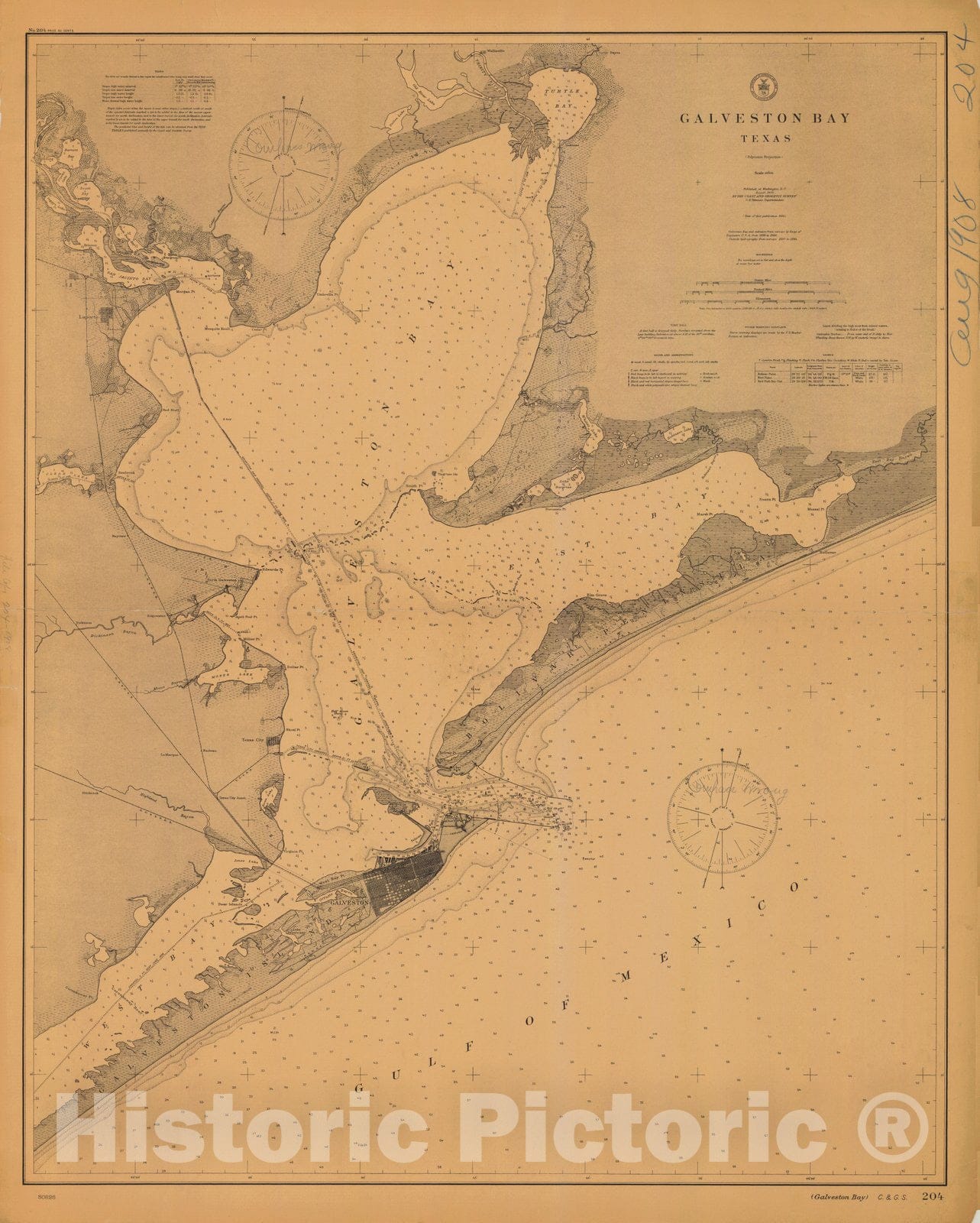 • .Historic Nautical Map - Galveston Bay, Texas, 1906 NOAA Chart - Vintage Wall Art
