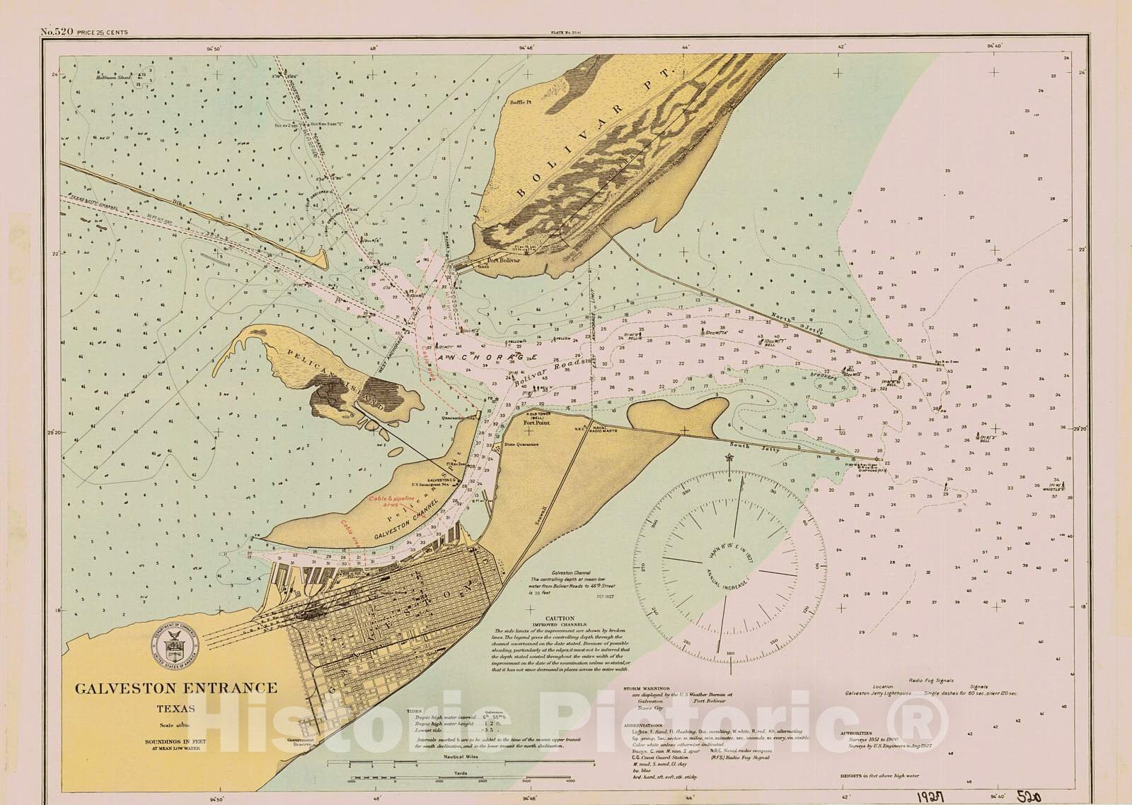 Historic Nautical Map - Galveston Entrance 3 Of 4 Lower Right Corner, 1927 NOAA Chart - Texas (TX) - Vintage Wall Art
