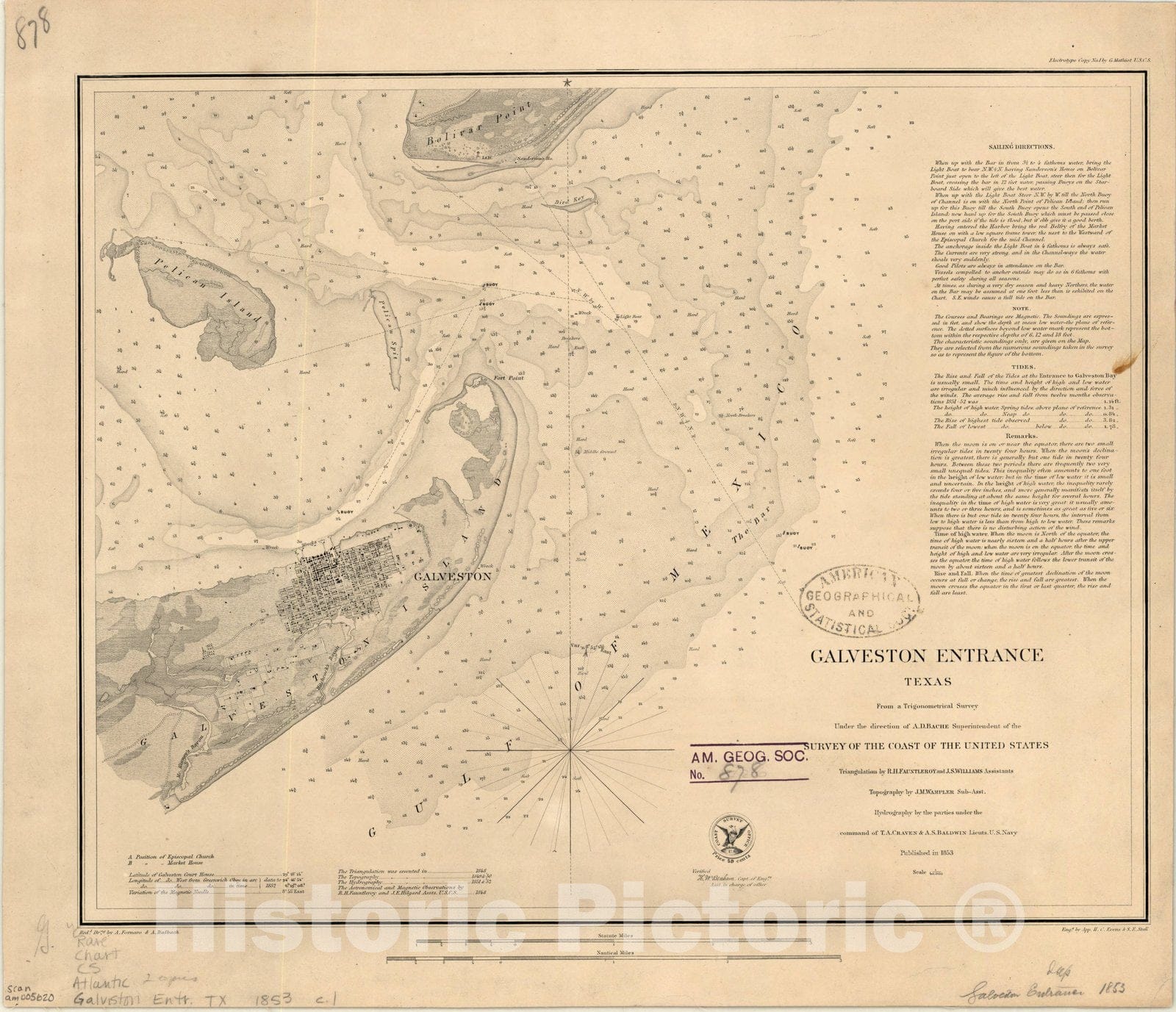 Map : Galveston, Texas 1853 , Galveston entrance, Texas , Antique Vintage Reproduction