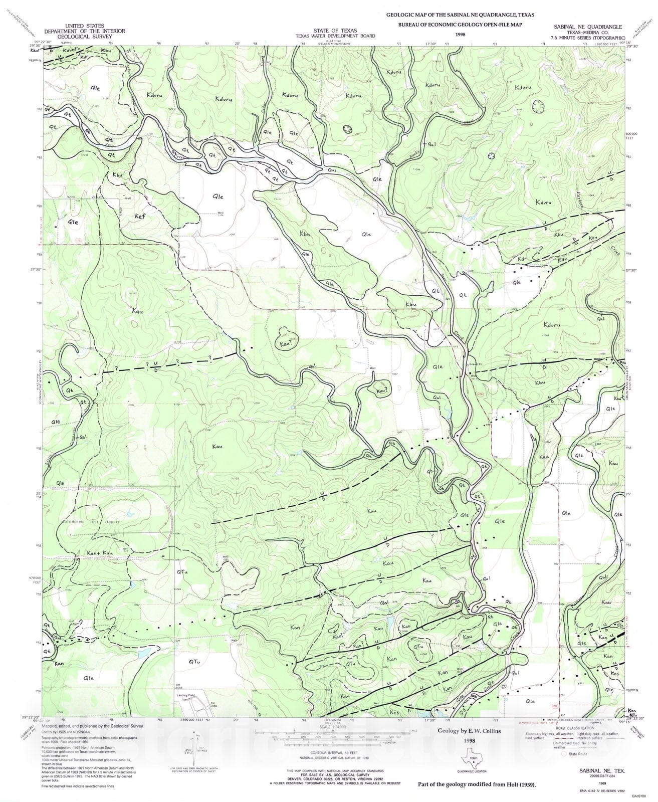 Map : Geologic map of the Sabinal NE quadrangle, Texas, 1998 Cartography Wall Art :