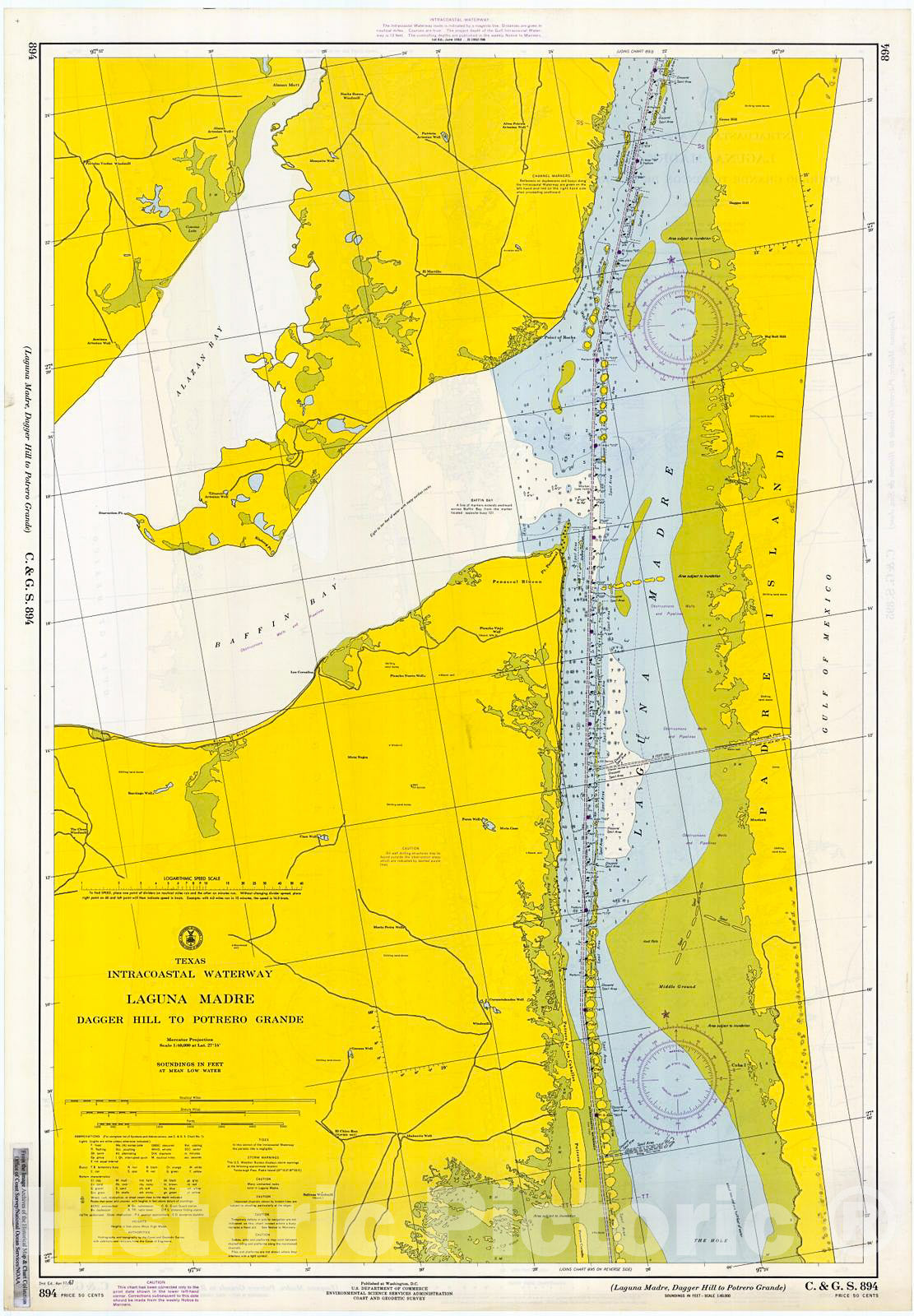Historic Nautical Map - Lana Madre : Dagger Hill To Potrero Grande, 1967 NOAA Chart - Texas (TX) - Vintage Wall Art