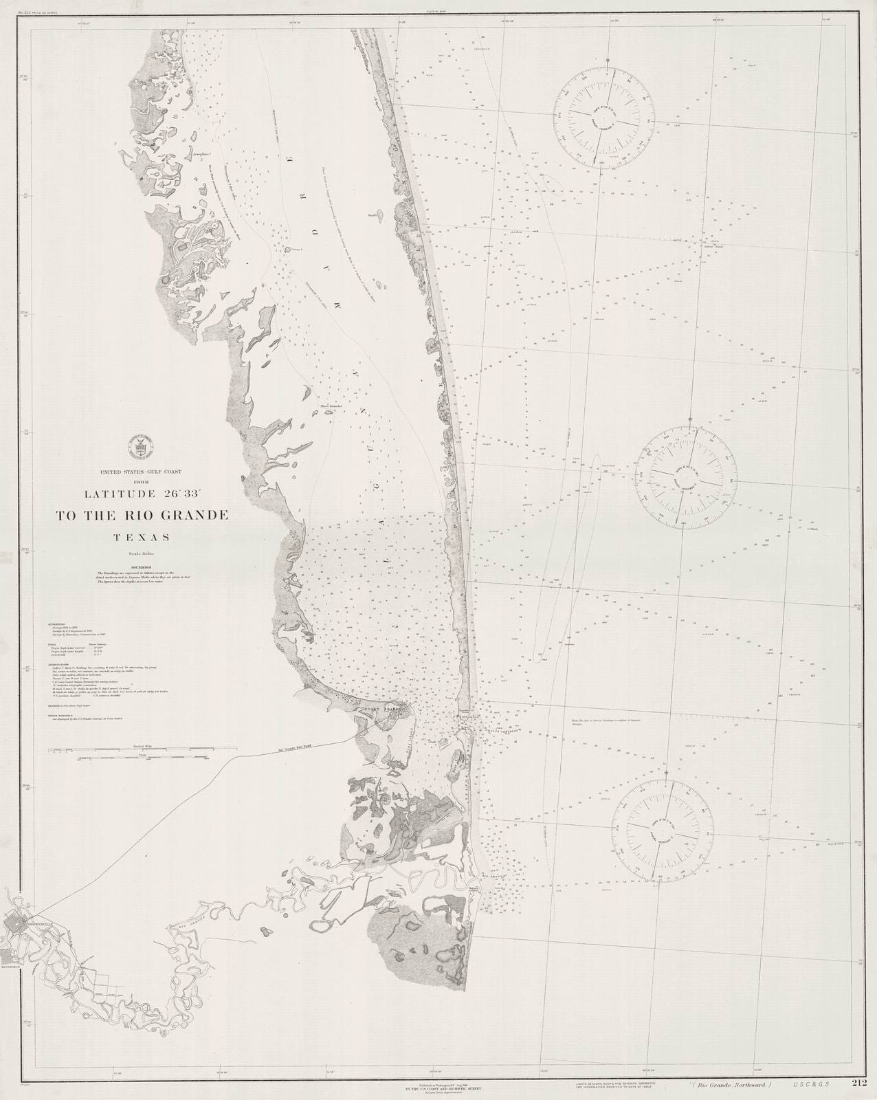 • .Historic Nautical Map - From Latitude 26?33' To The Rio Grande, Texas, 1916 NOAA Chart - Vintage Wall Art