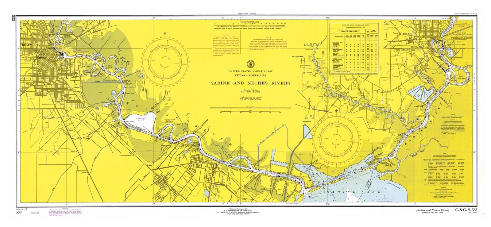 Historic Nautical Map - Sabine And Neches Rivers, 1970 NOAA Chart - Texas (TX) - Vintage Wall Art