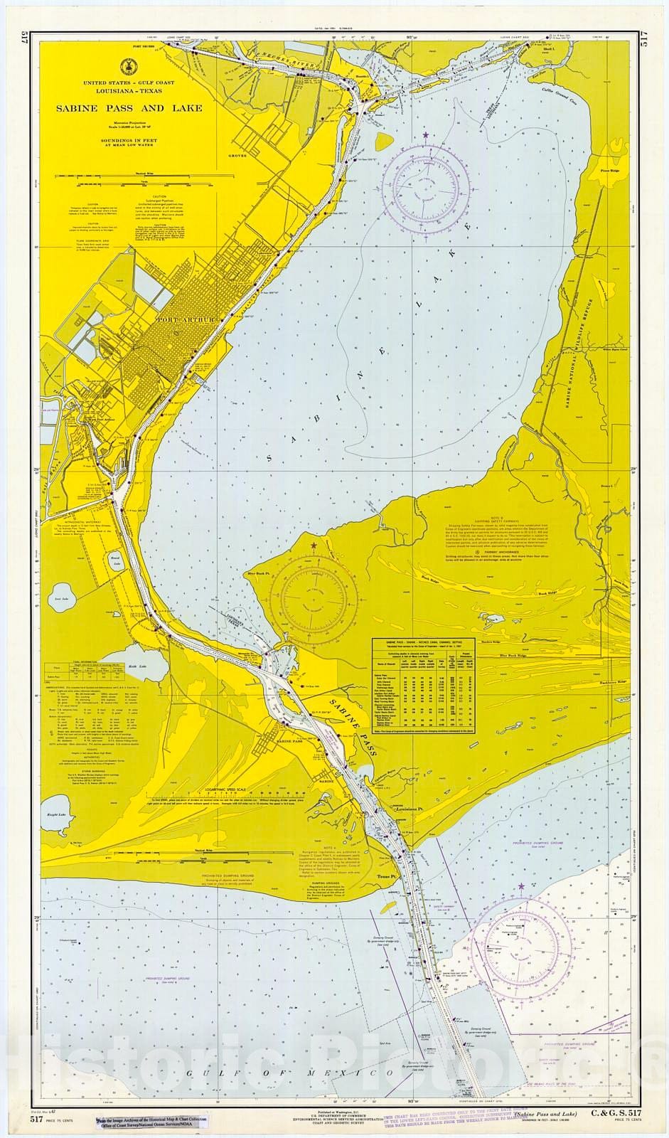 • .Historic Nautical Map - Sabine Pass And Lake, 1967 NOAA Chart - Louisiana, Texas (LA, TX) - Vintage Wall Art
