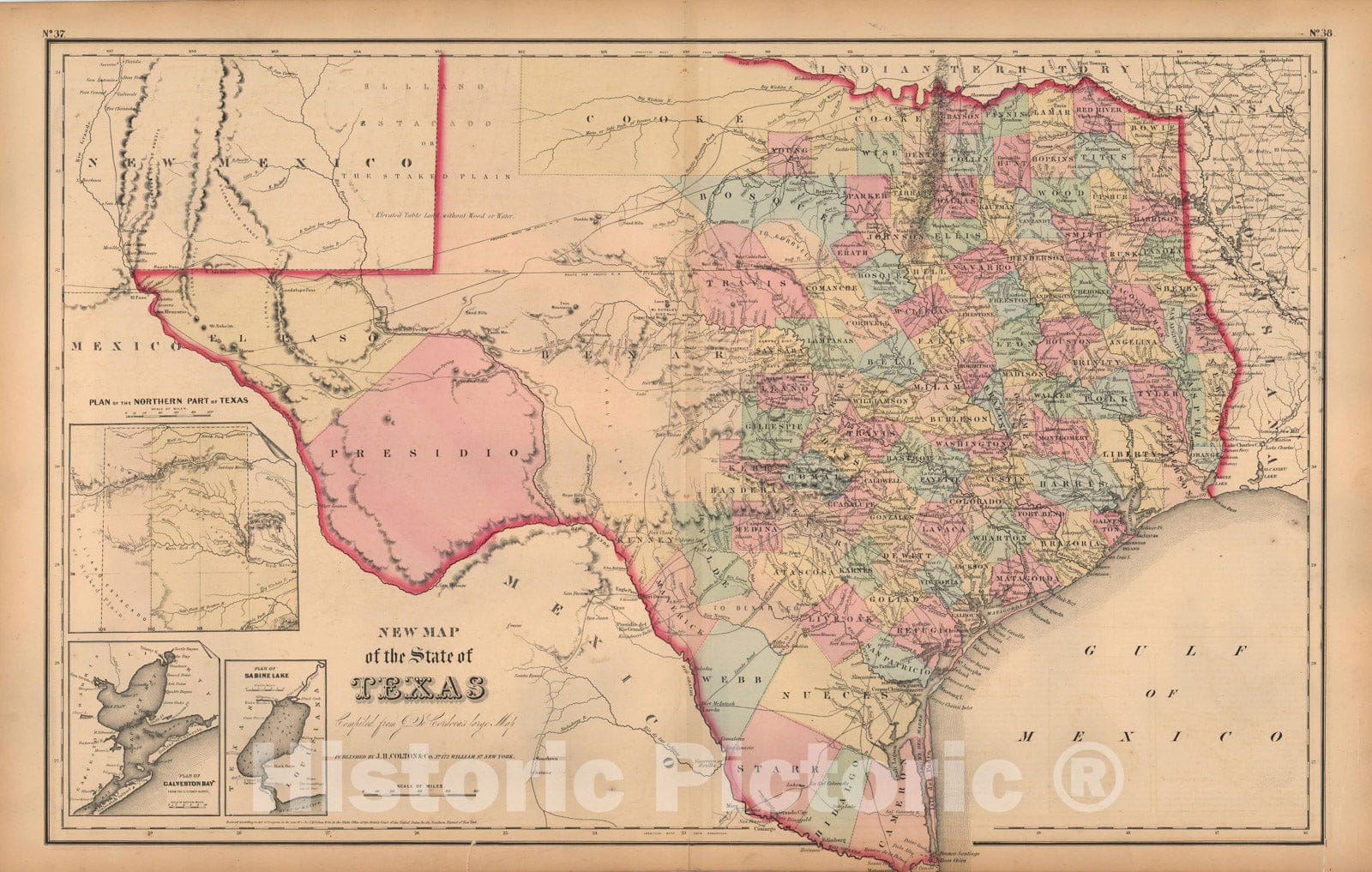 Historic Map : Texas 1857 , General Atlas (Of The World) , Vintage Wall Art