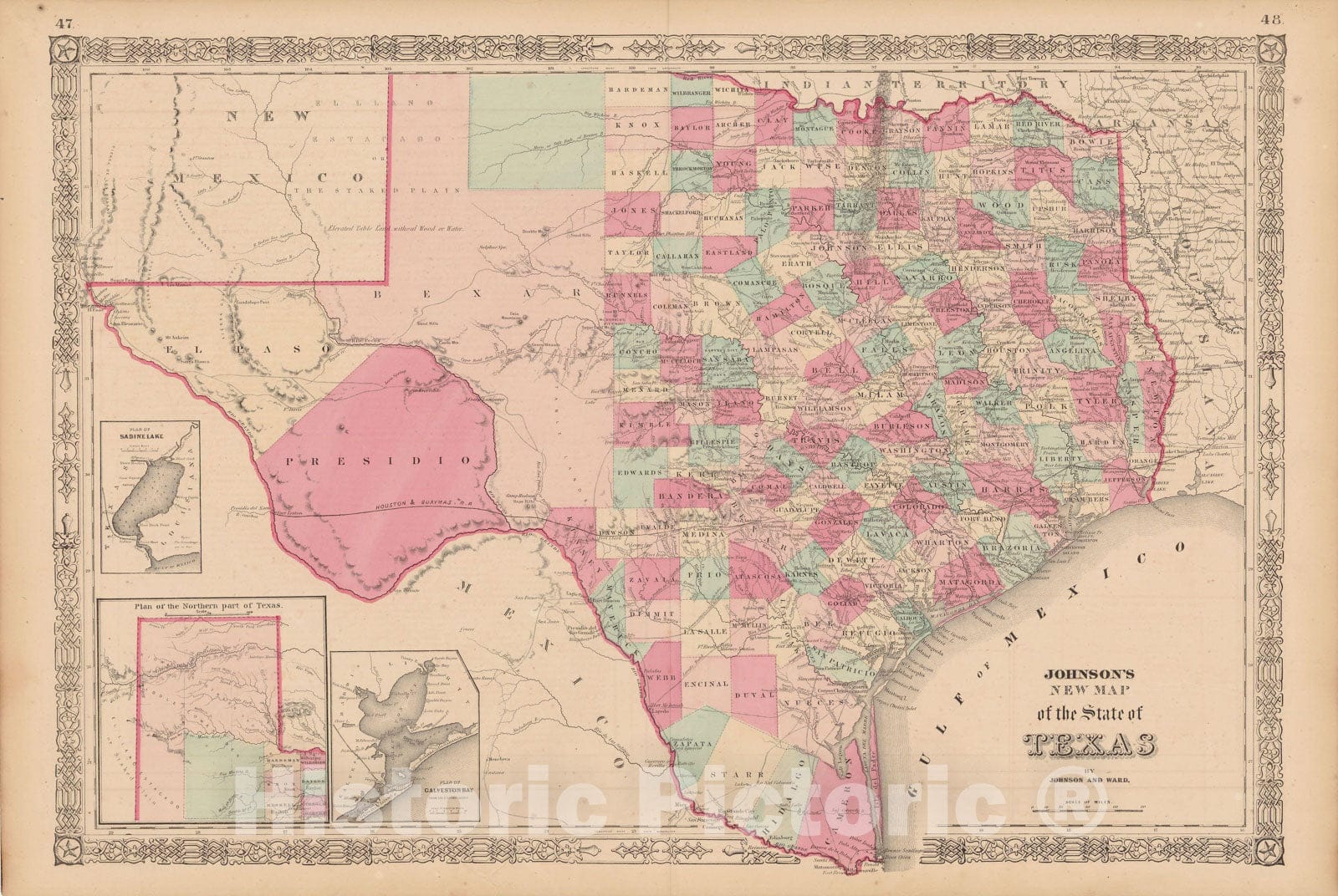 Historic Map : Texas 1865 , Johnson's Family Atlas , Vintage Wall Art