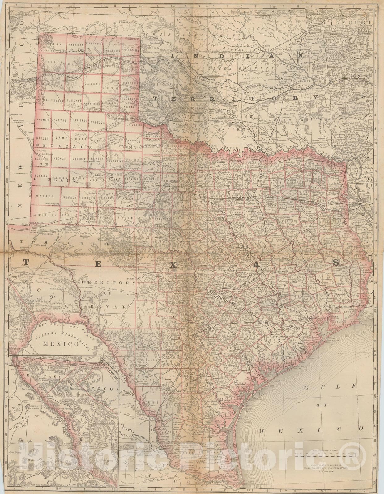 Historic Map : Texas 1877 , Business Atlas of the USA , Vintage Wall Art