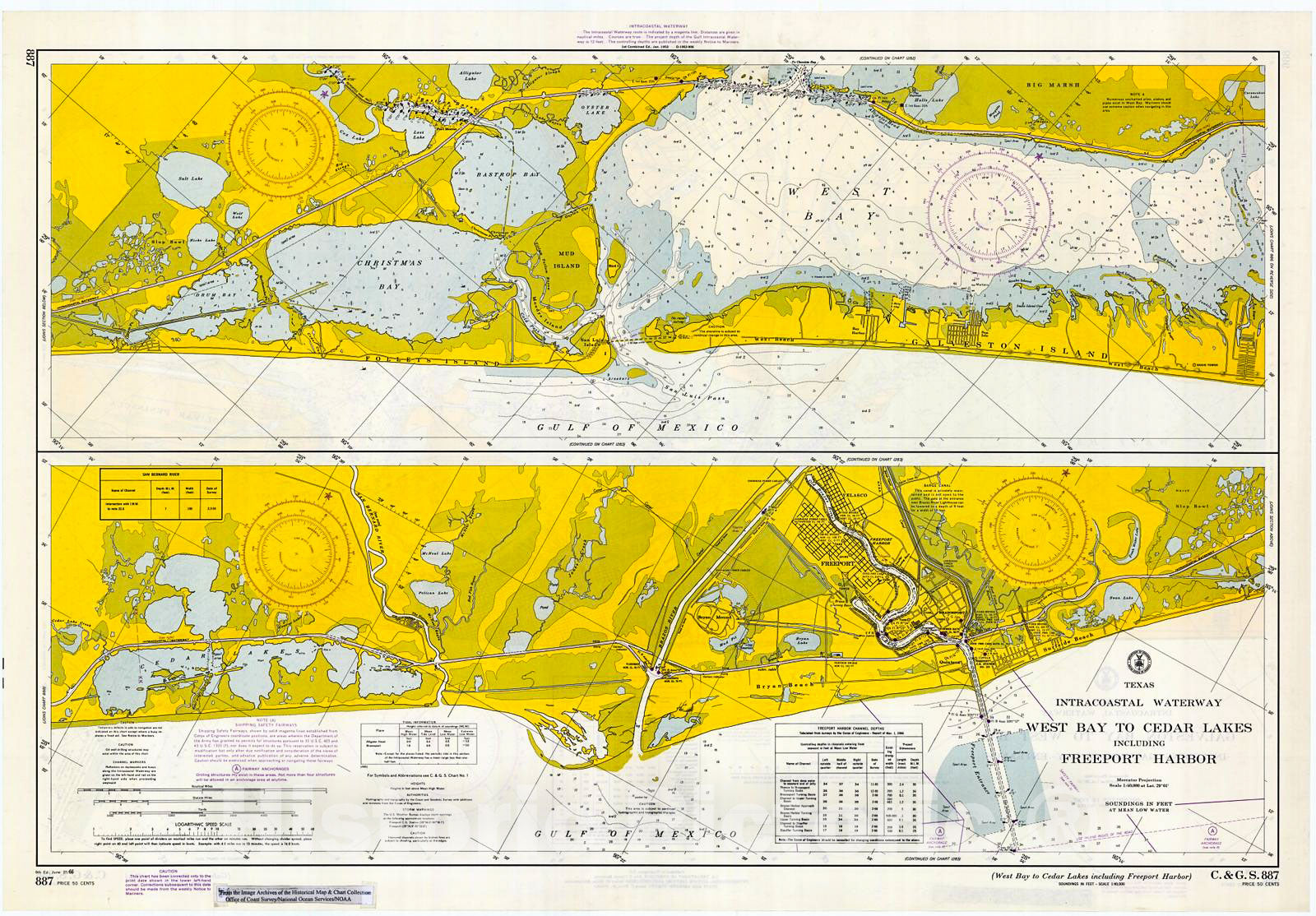 Historic Nautical Map - West Bay To Cedar Lakes Including Freeport Harbor, 1966 NOAA Chart - Texas (TX) - Vintage Wall Art